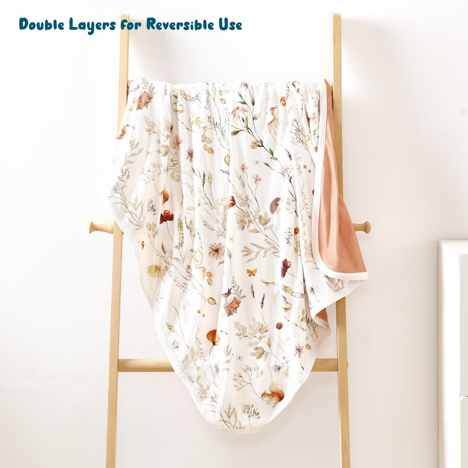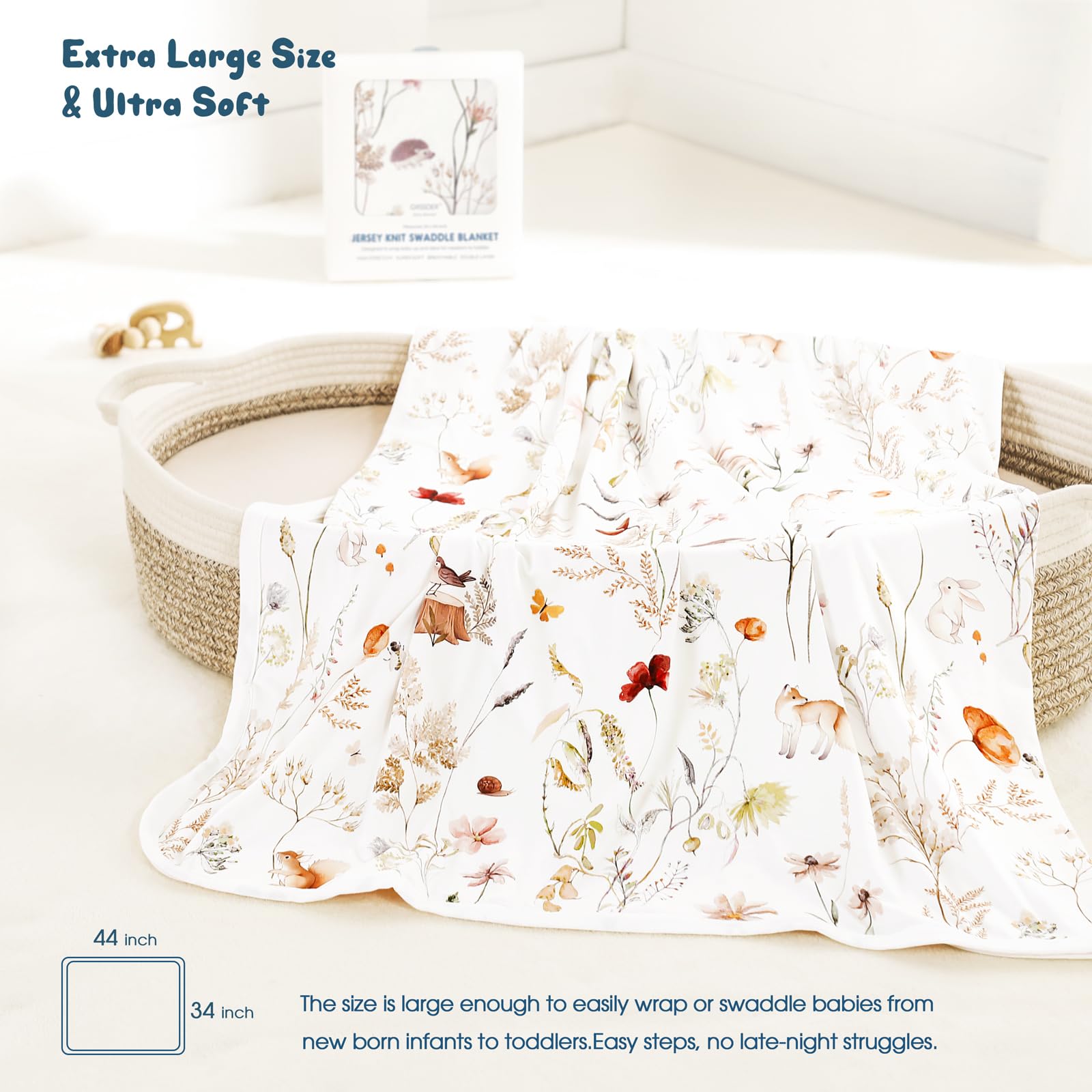 Double Layer: Double layer in medium weight is perfect for all seasons. Measures 34" W x 44" L is great as a swaddle or infant swaddle wrap in cold season and make it as a quilt and play mat in the hot season. The blanket will bring a comfortable sleeping temperature to your baby.