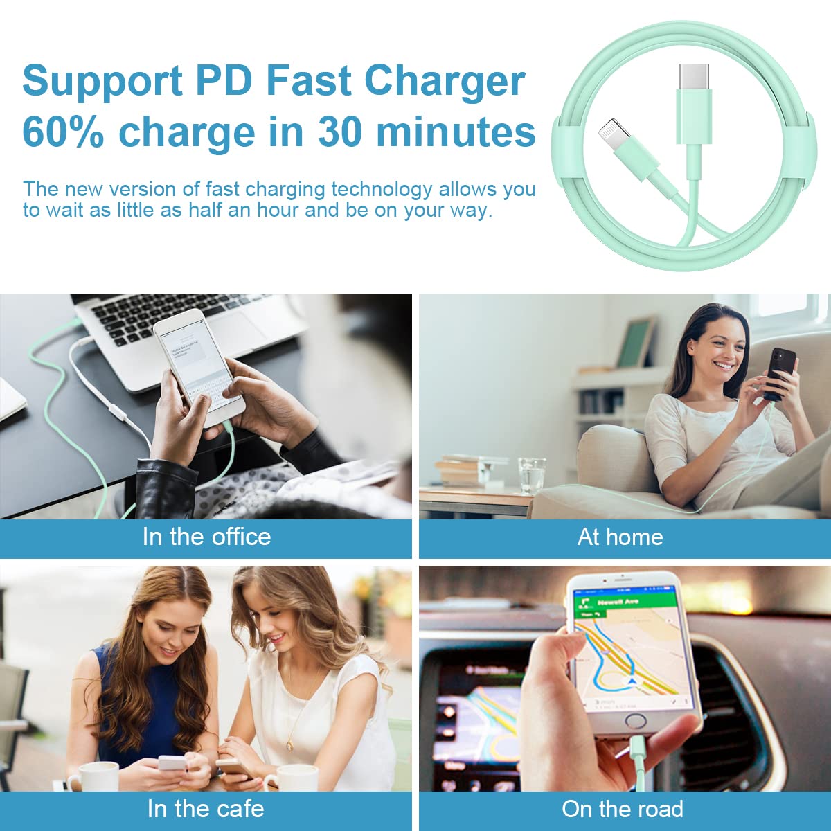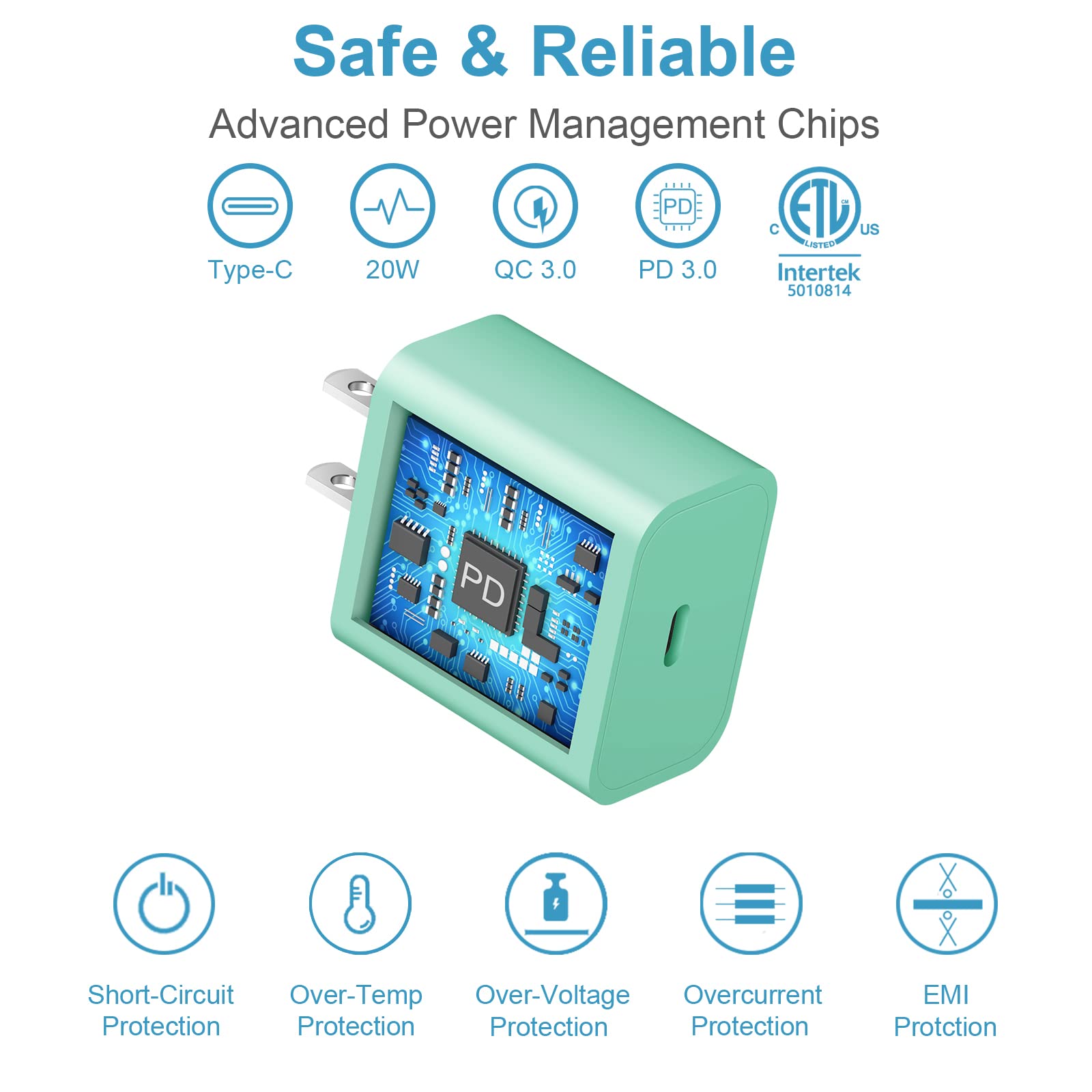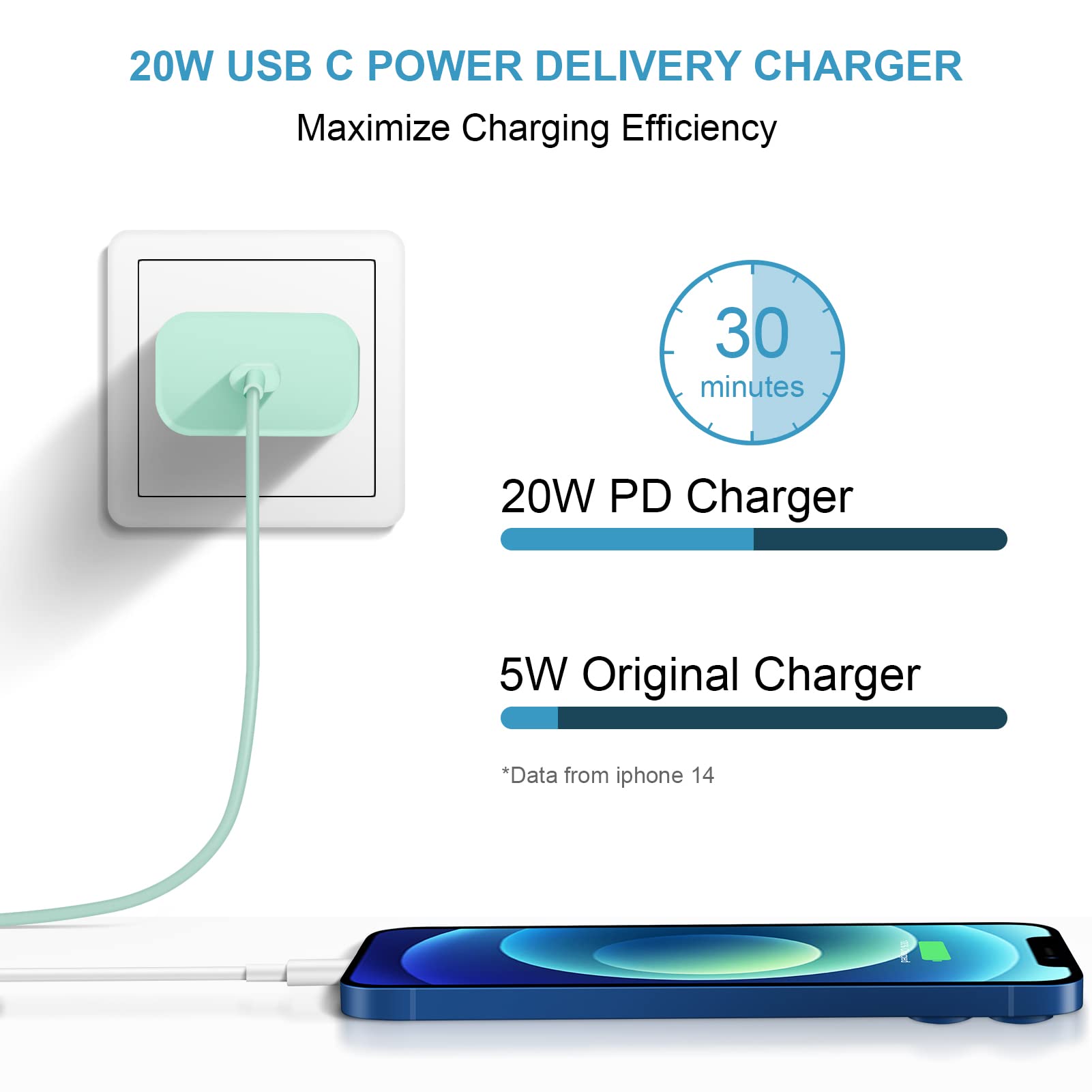 【Fast Charger iPhone】 iPhone Fast Charger equipped with 20W PD 3.0 USB Type C power delivery wall plug, Firewire Cables PD 3.0 Quick-Charge USB C port provides Max 20W output power, charge your device up to 3x faster than original 5W charger,charging your i Phone 12 up to 50% in just 30 minutes, saving over 1.5hrs for you.
