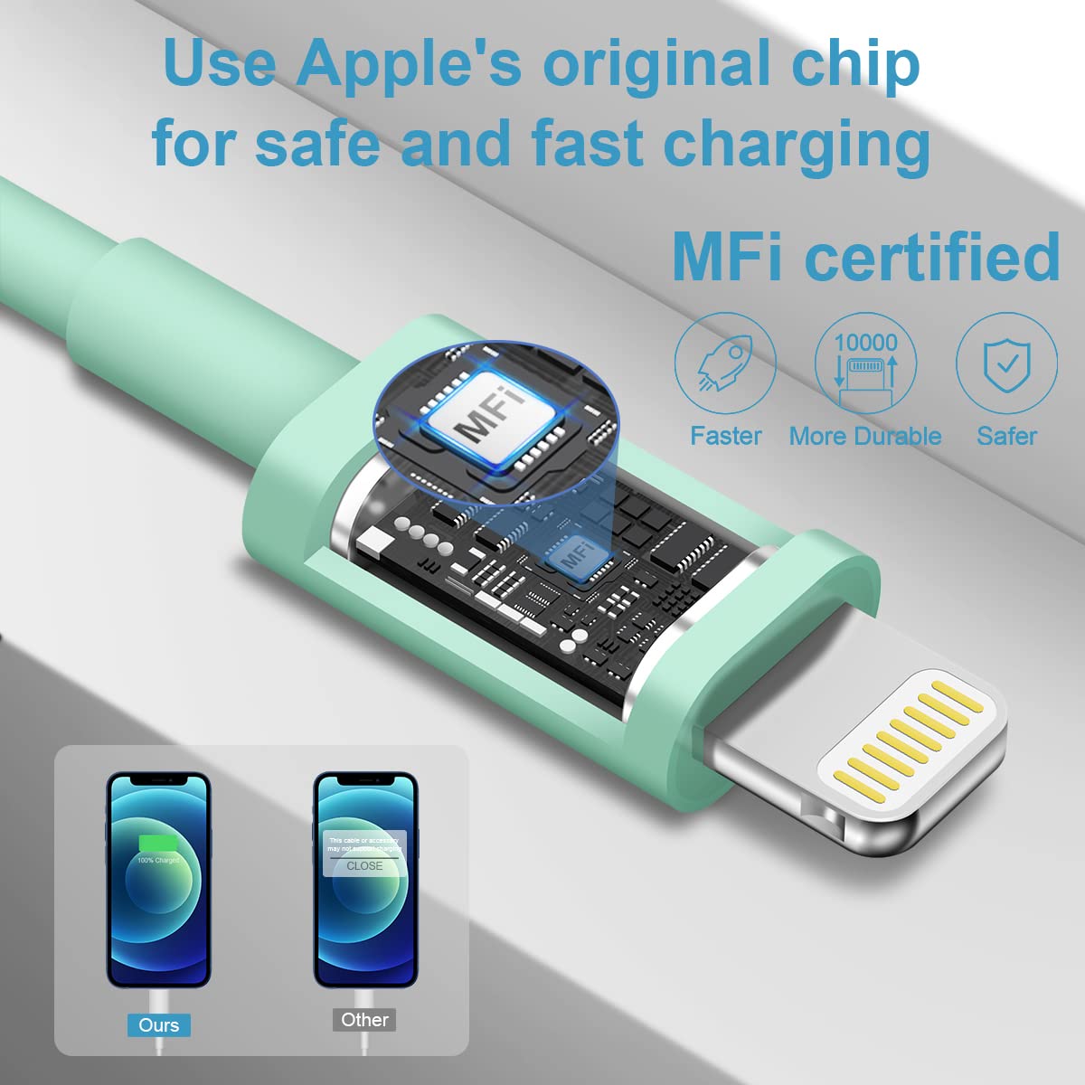【iPhone Charger Cord】 With the MFi Chip, the USB-C to fast cord Firewire Cables equips automatic chip recognition function. The MFi Certification ensures 100% flawless compatibility with devices. No more trigger warning messages.