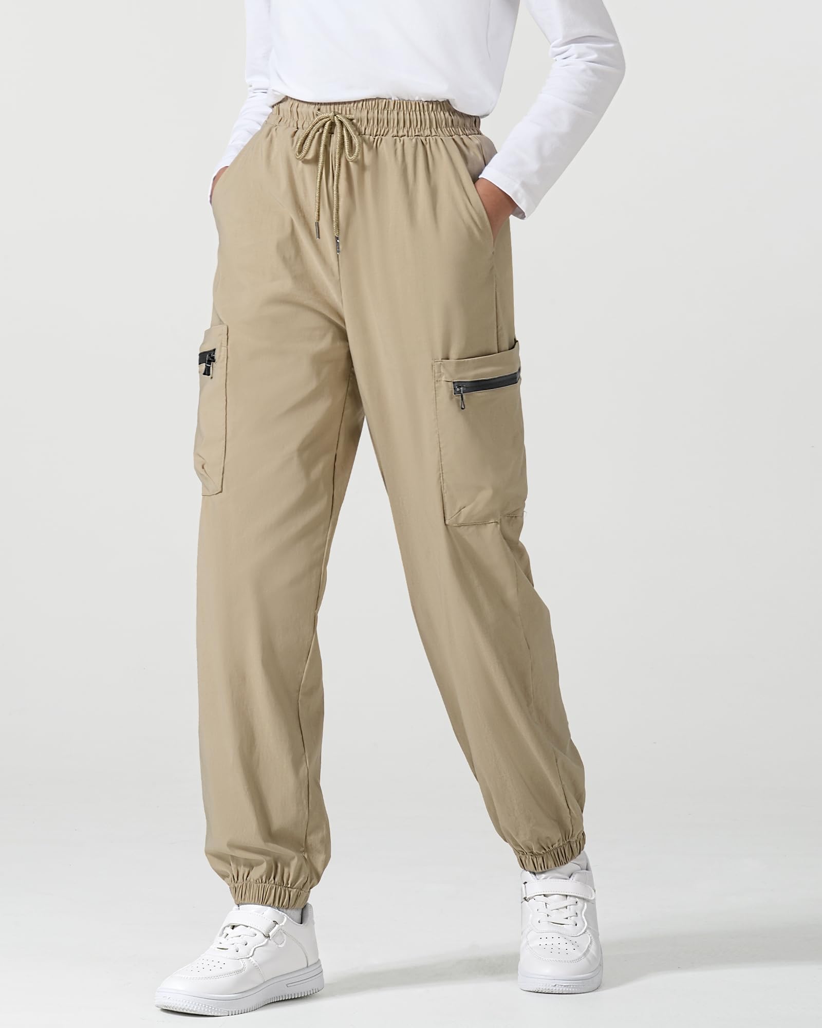 Boys Quick Dry Pants -- The athletic cargo pants are crafted with slight water resistant fabric that repels stains and light liquids and dry quickly to keep the body dry and comfortable all day long. The boys rain pants combine style and functionality, making them suitable for kids on the go.