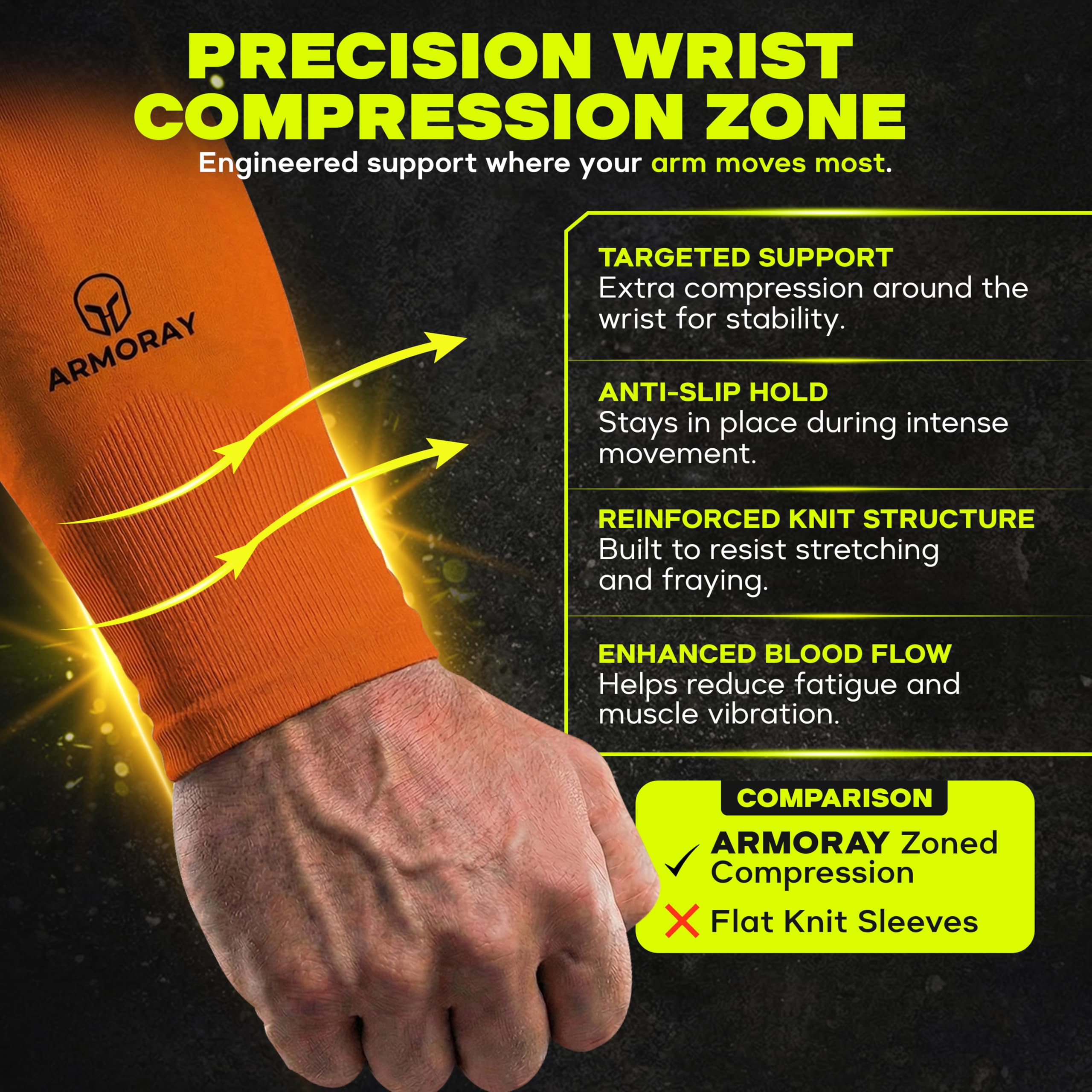 SUPERIOR Compression Fit: These arm compression sleeves provide a supportive, snug feel without restricting movement. Stretch fabric adapts to different arm sizes while maintaining shape during workouts or long hours outdoors.