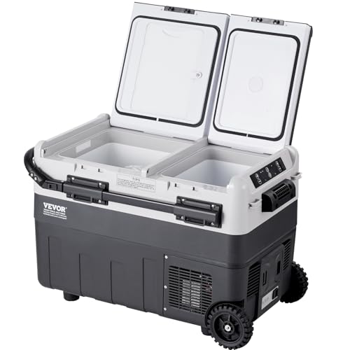 Large Capacity: The portable refrigerator freezer has a dual compartment capacity of 50 L / 52.8 qt. This robust RV fridge can hold 64 cans of 330ml cola or 36 bottles of 550ml water or 12 bottles of 750ml red wine, accommodating seafood, snacks, meats, and beverages, meeting the needs of long trips such as travel, boating, and camping.