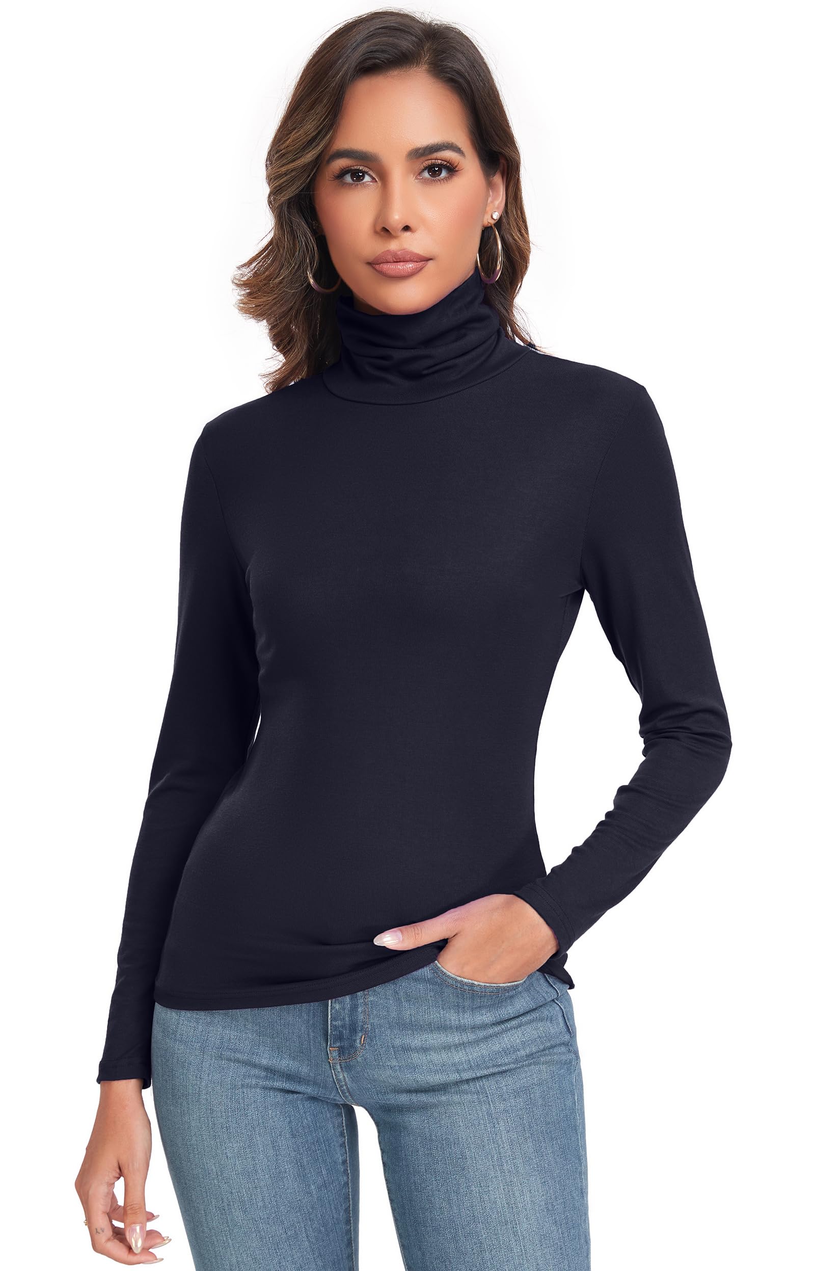 Description Womens Turtleneck Long Sleeve Shirts Thermal Underwear Tops Women Mock Neck Turtleneck Active Shirt Base Layer Long Sleeve Underwear Tops make yourself comfortable and stylish. Stretchy, lightweight but not see through. Slim fit but so soft and comfort. Our long sleeve turtleneck top can be easily paired with shorts, jeans, trousers, skirts, high heels, or boots. You'll look sexy, fashionable, and elegant in any occasion. Women's High Neck Long Sleeve Turtleneck T-Shirt great for cold weather, this turtleneck makes from stretchy and breathable fabric and snug fits to your neck. A necessity for every woman's wardrobe! Machine wash, Not fade, Us Standard Size. Please refer to the size chart before purchasing. Size Chart Small --- Bust 33.0" --- Sleeve 22.8" --- Length 24.4" Medium --- Bust 35.4" --- Sleeve 23.2" --- Length 24.8" Large --- Bust 37.8" --- Sleeve 23.6" --- Length 25.2" X-Large --- Bust 40.2" --- Sleeve 24.0" --- Length 25.6" XX-Large --- Bust 42.6" --- Sleeve 24.4" --- Length 26.0" Note: 1. Please allow 0.4-0.8 inch differ due to manual measurement. 2. Due to the light and different computer monitor, the color may be slightly different as pictures.