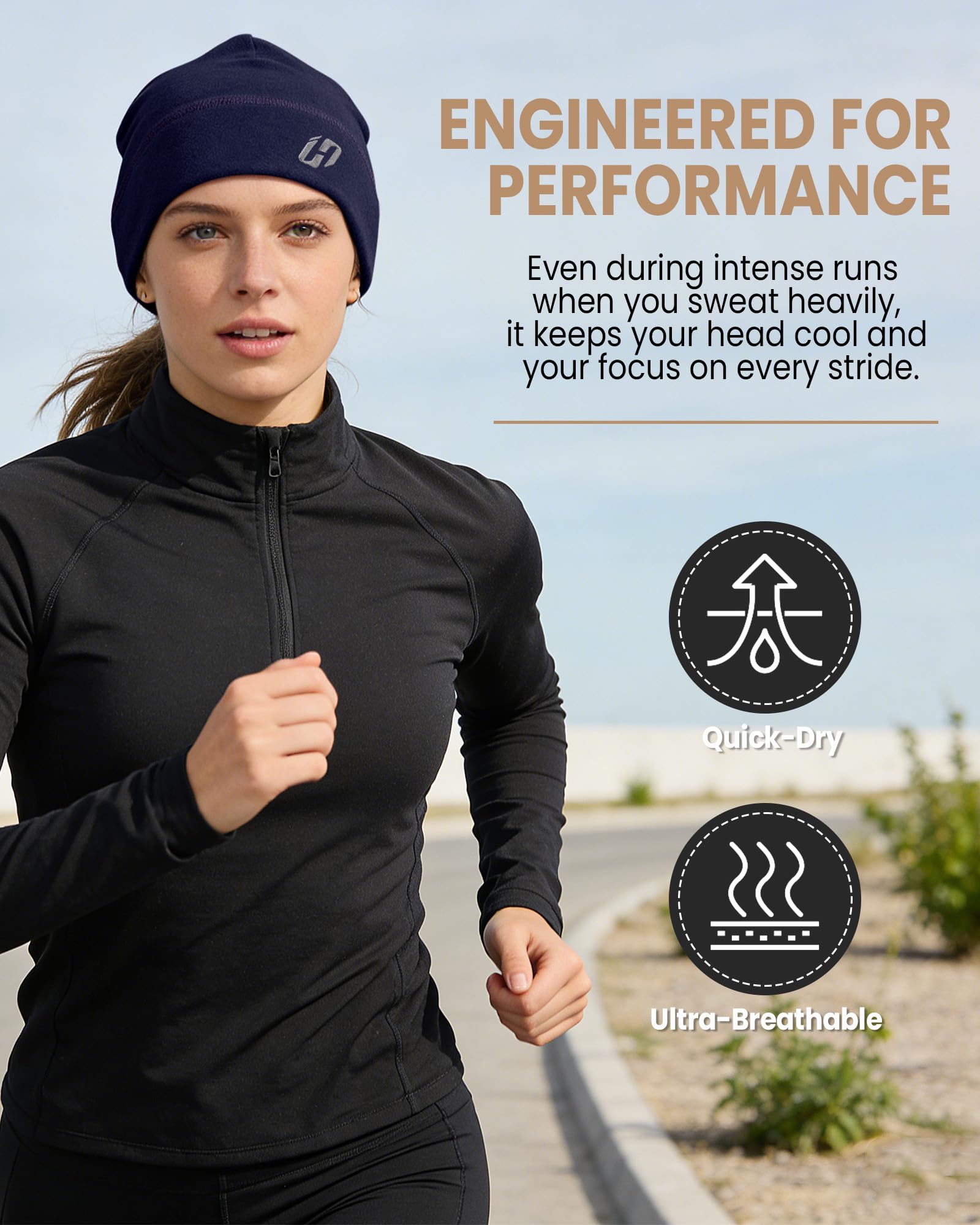 On warmer days, it breathes well. Super comfortable fleece hat that is ideal for sports activities, because the material is not very thick, light and fits well.