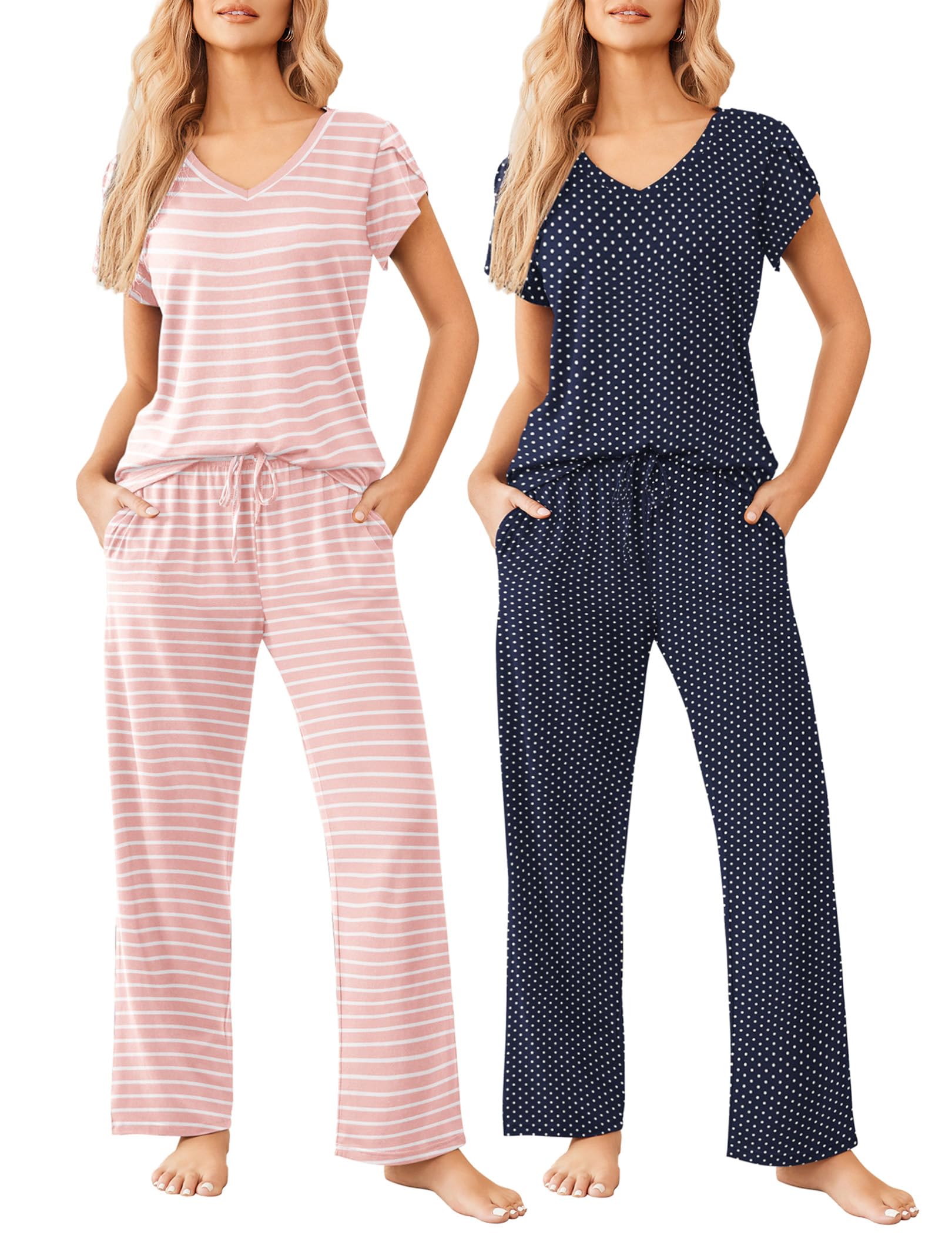 SHORT OR LONG SLEEVE OPTIONS: Choose from short-sleeve or long-sleeve tops with matching bottoms for the perfect set in any season. Lightweight, cozy, and ideal for year-round wear.