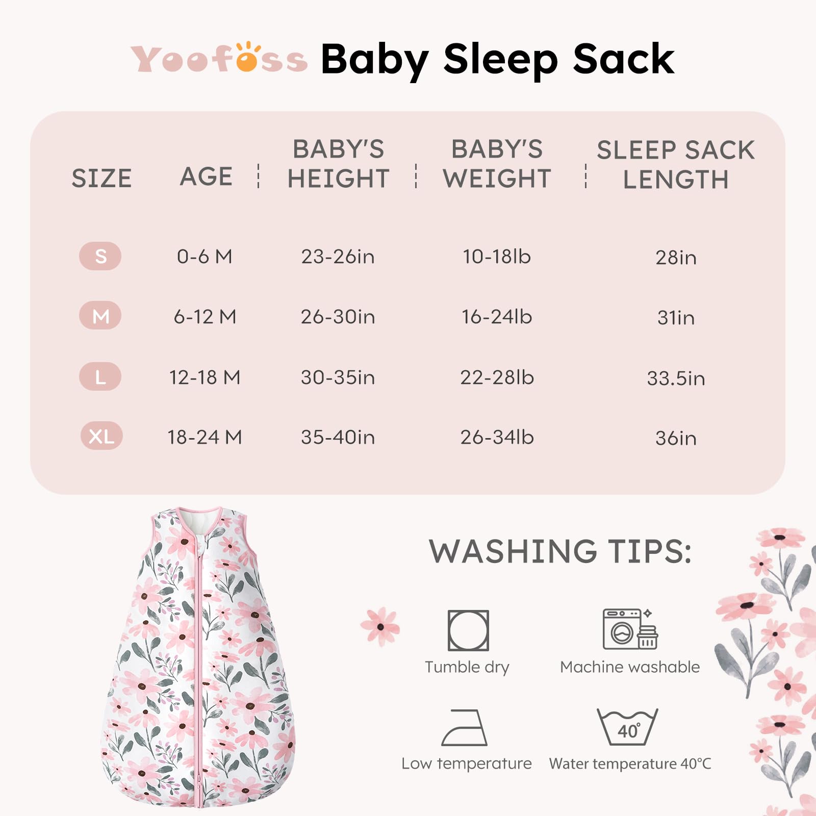 2-Way Zipper and Available Sizes: The top-grade double zipper allows unzip from the bottom for fuss-free diaper changes without disturb baby during the night, and design with zipper garage to protect baby’s face from chafing. There are 4 available sizes for this baby sleep sack; S for 0-6 Months. M for 6-12 Months. L for 12-18 Months. XL for 18-24 Months.