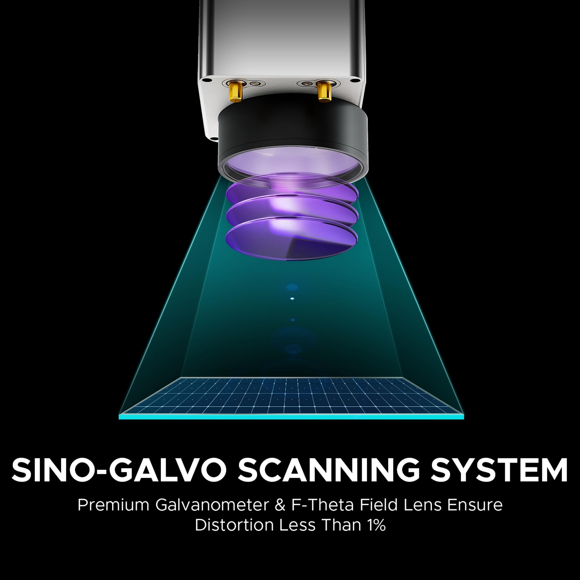 0.01mm and 10000mm: 6.9''X6.9''workbed Fiber laser machine with a spot diameter of 0.01 mm,and the field lens uses its air-spaced design and protective & anti-reflective coatings to provide throughput with less than 1% distortion,maximum engraving speed up to 10000 mm/s,which helps you to get the job done accurately and quickly.