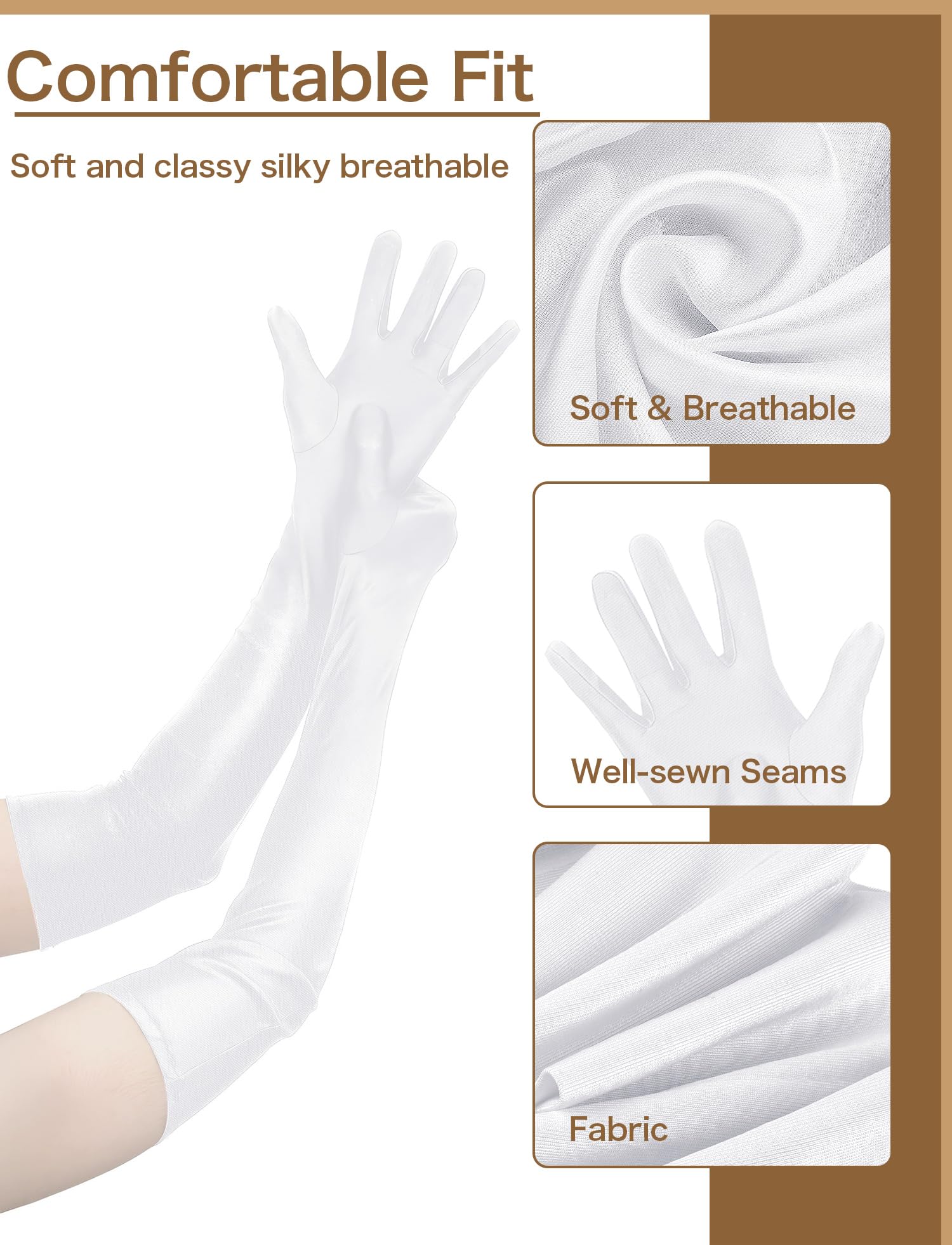 【Comfortable Fit】Our formal satin gloves are incredibly soft and classy silky, comfortable and breathable to wear; give you a perfect wearing experience