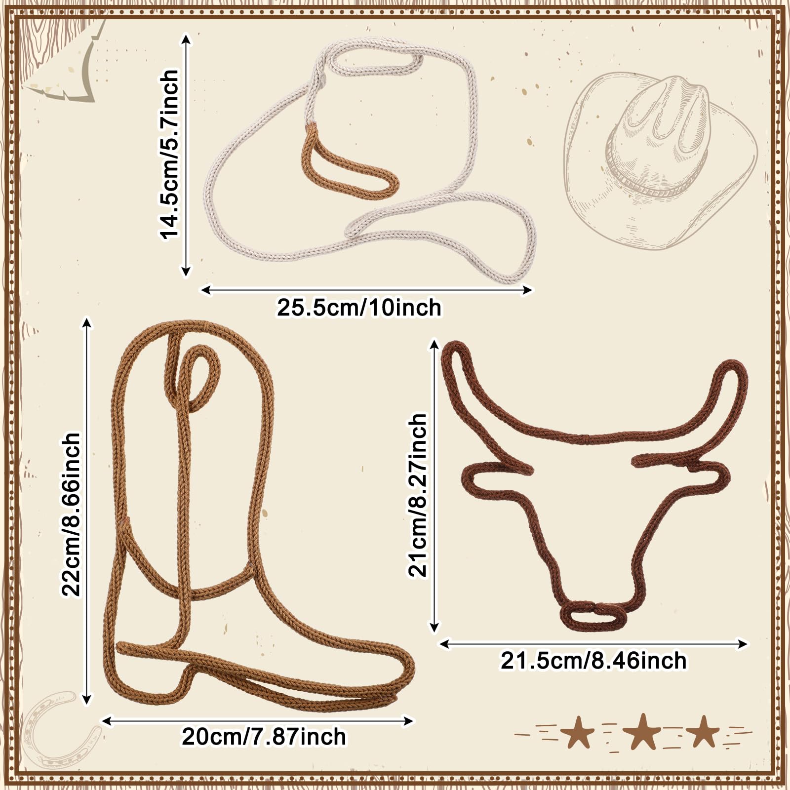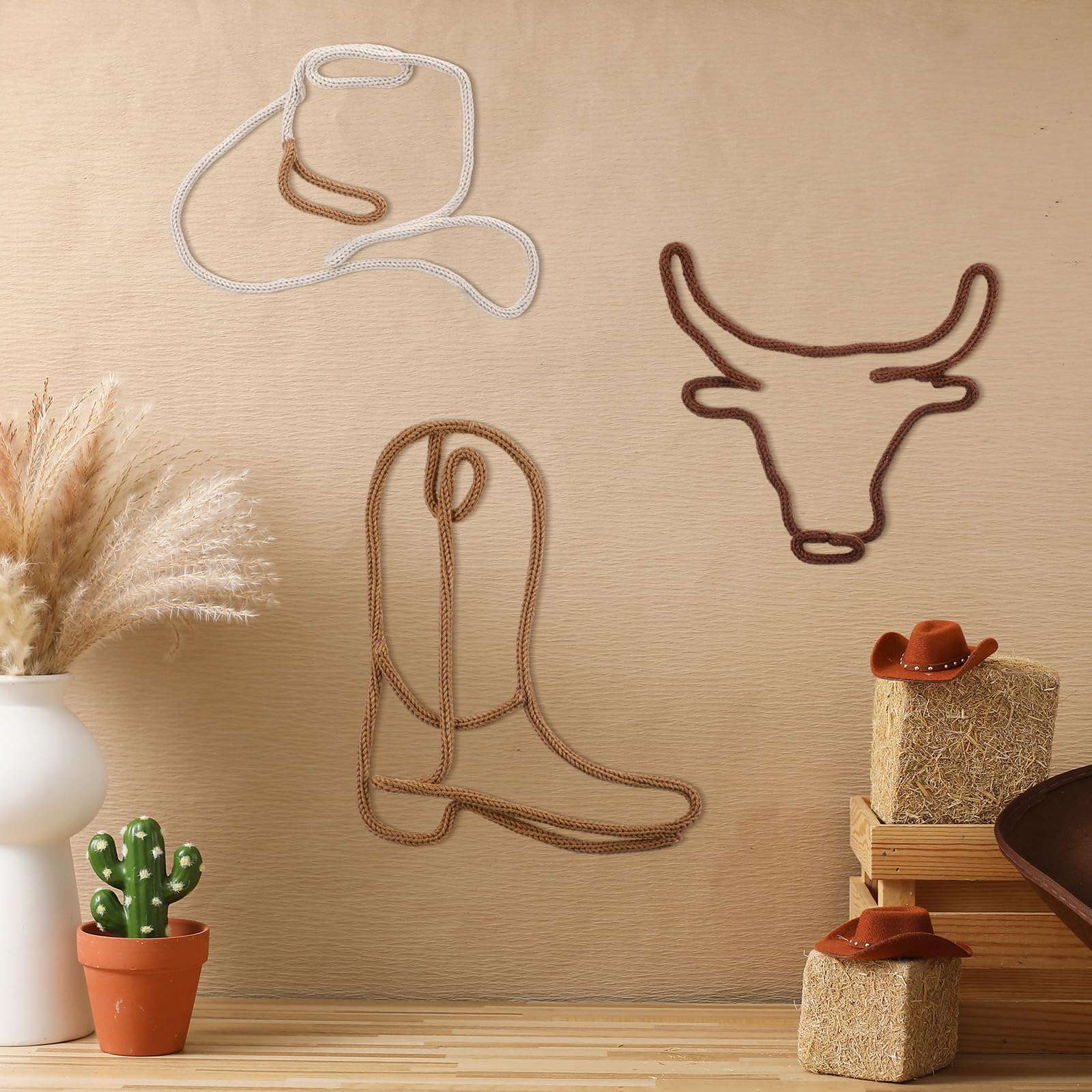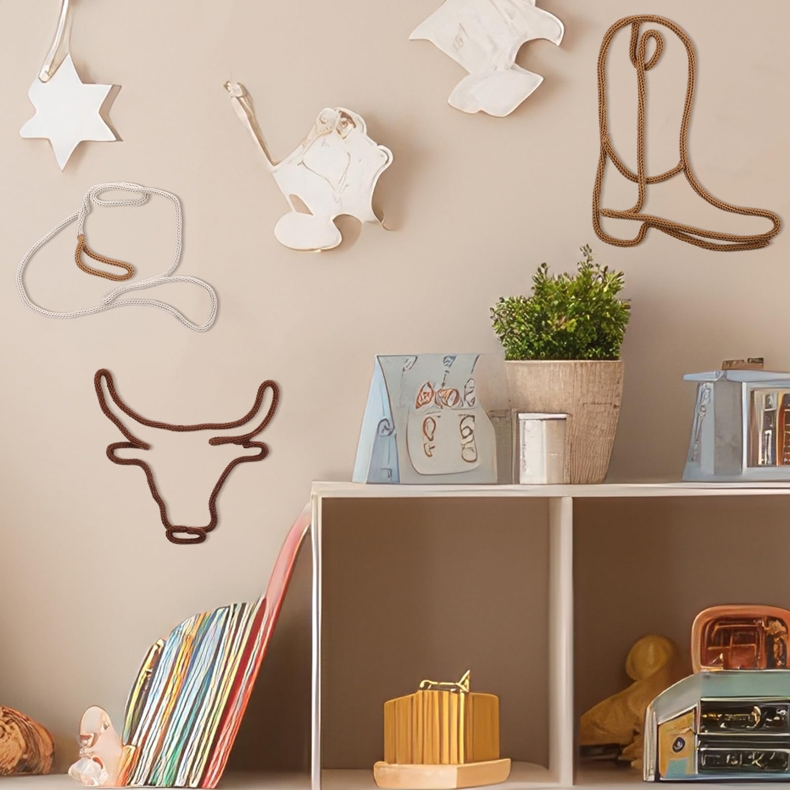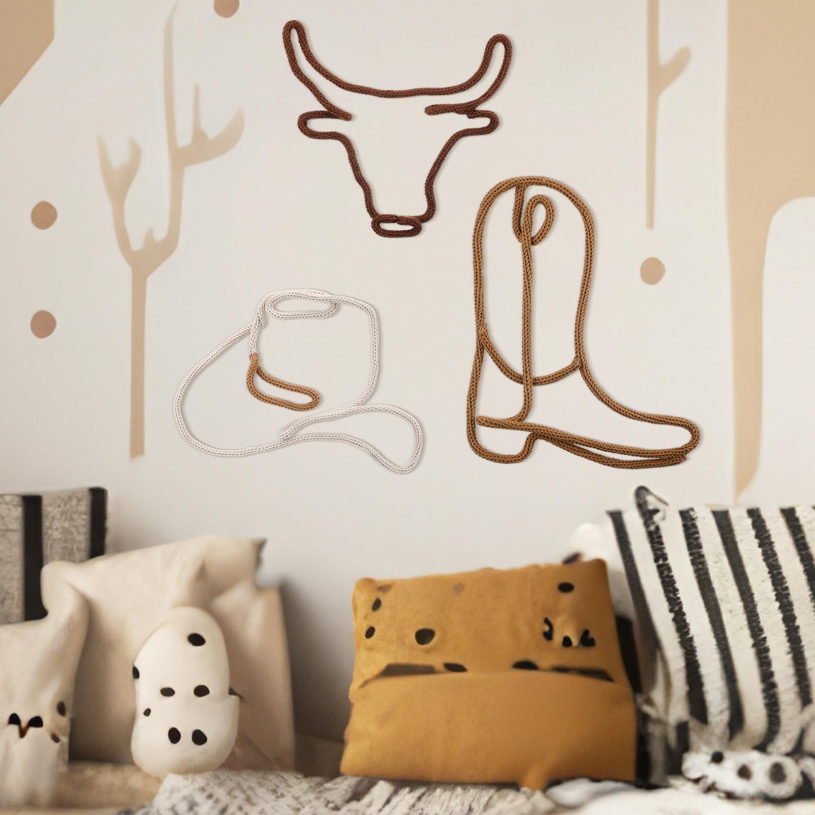 Charming Design and Versatile Decoration: this 3-piece set of western cowboy-themed woven tassel ornaments adds a touch of natural charm to any space; With three adorable designs featuring different motifsβbull head, cowboy hat, and cowboy bootsβit's good for decorating rooms, dormitories, nurseries, or other spaces like bedrooms and living rooms