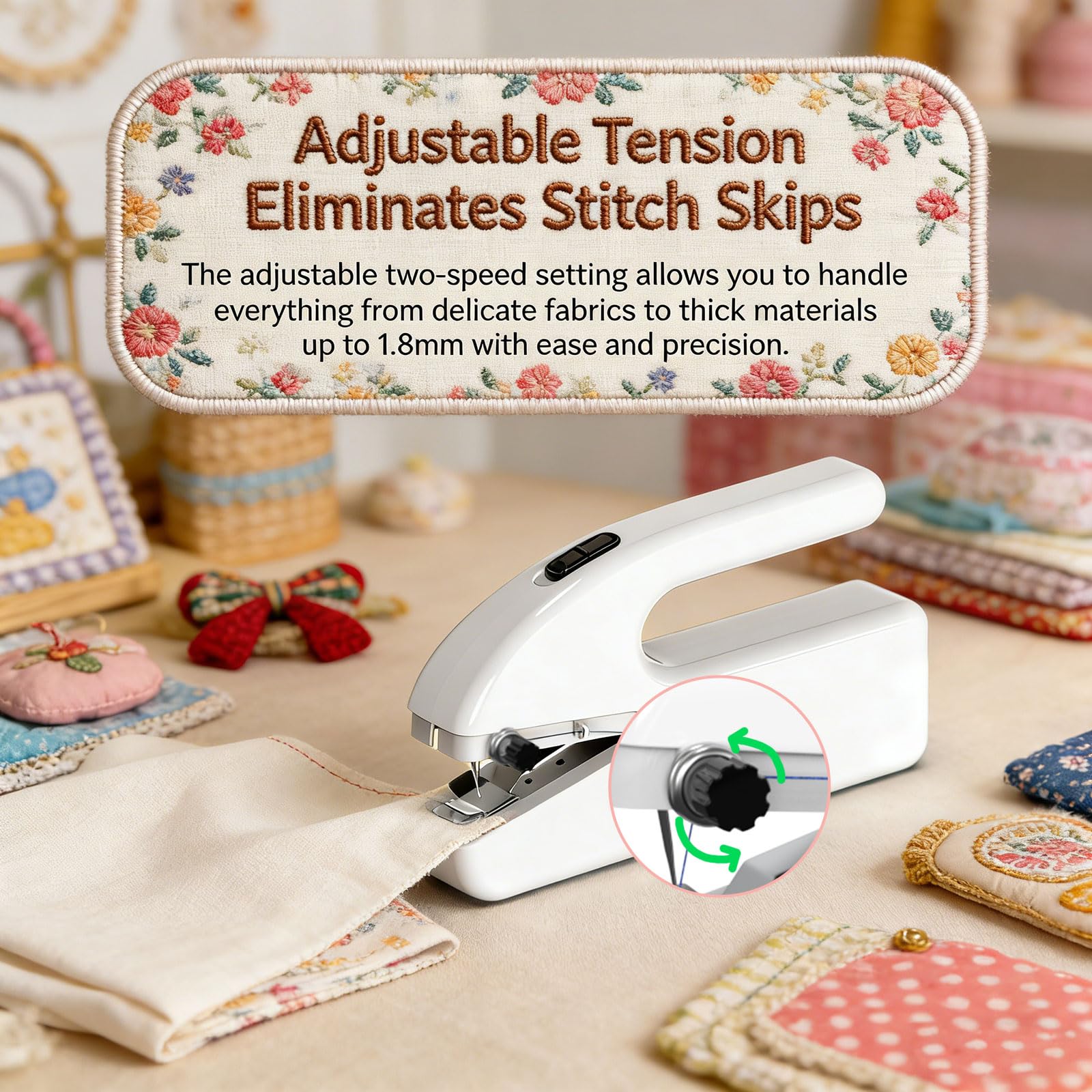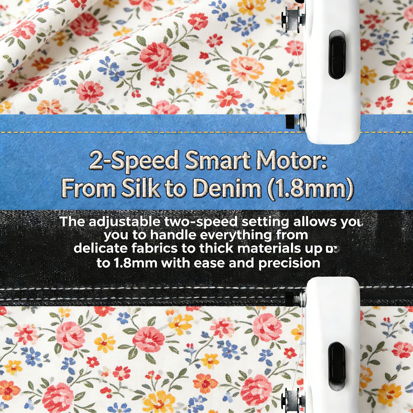 Smart Dual-Speed Control for Multiple Fabrics Switch freely between fast and slow speeds: low speed for precise sewing on sheer fabrics and silk, high speed for efficient denim handling. Upgraded motor penetrates up to 1.8mm thick materials, compatible with 90% of common fabrics for neat, secure stitches.