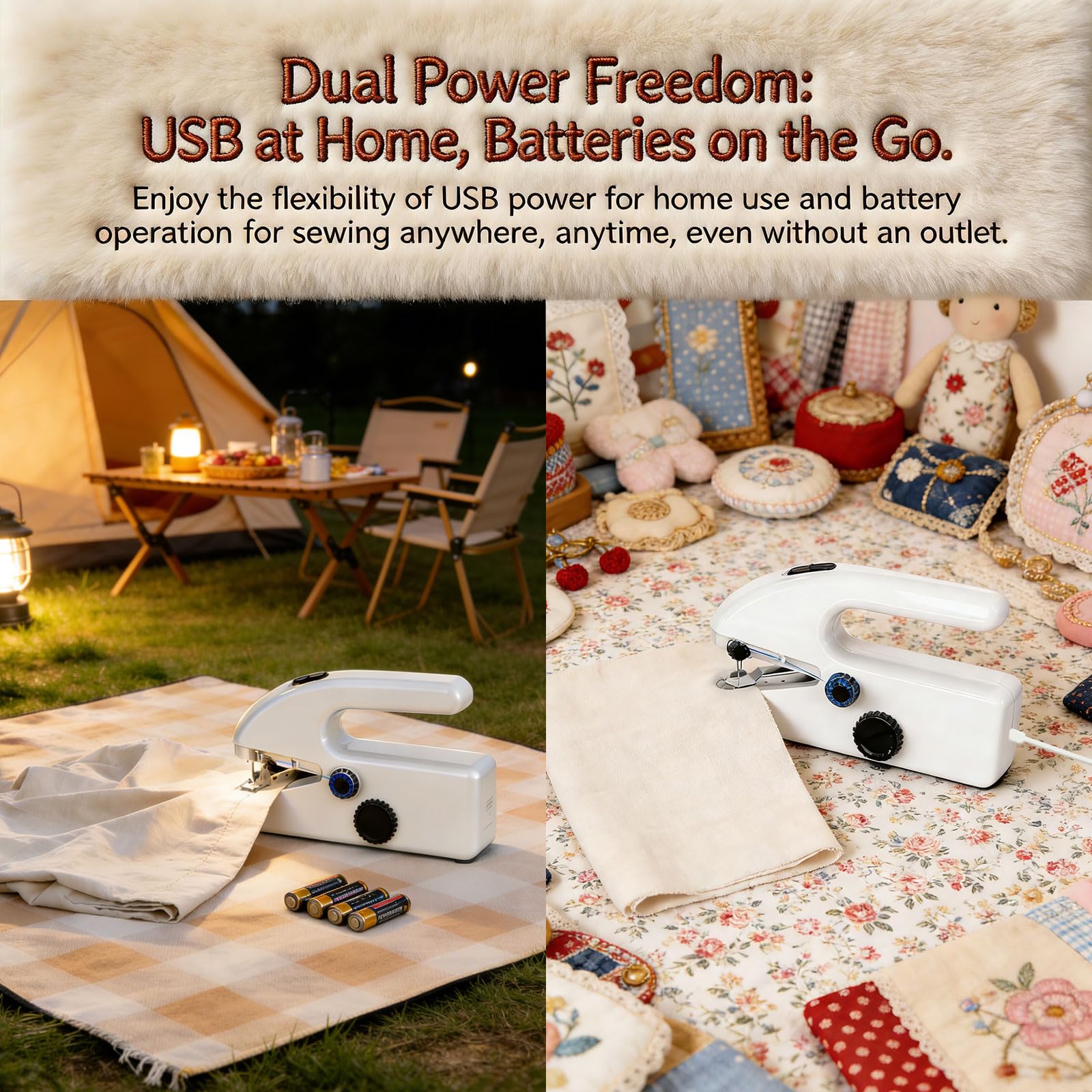Dual Power Mode for All-Scenario Use Supports 4 AA batteries (for outdoor emergencies) and Type-C charging (for home energy efficiency). Use anywhere—even without power during travel or camping—meeting all your home and on-the-go sewing needs.
