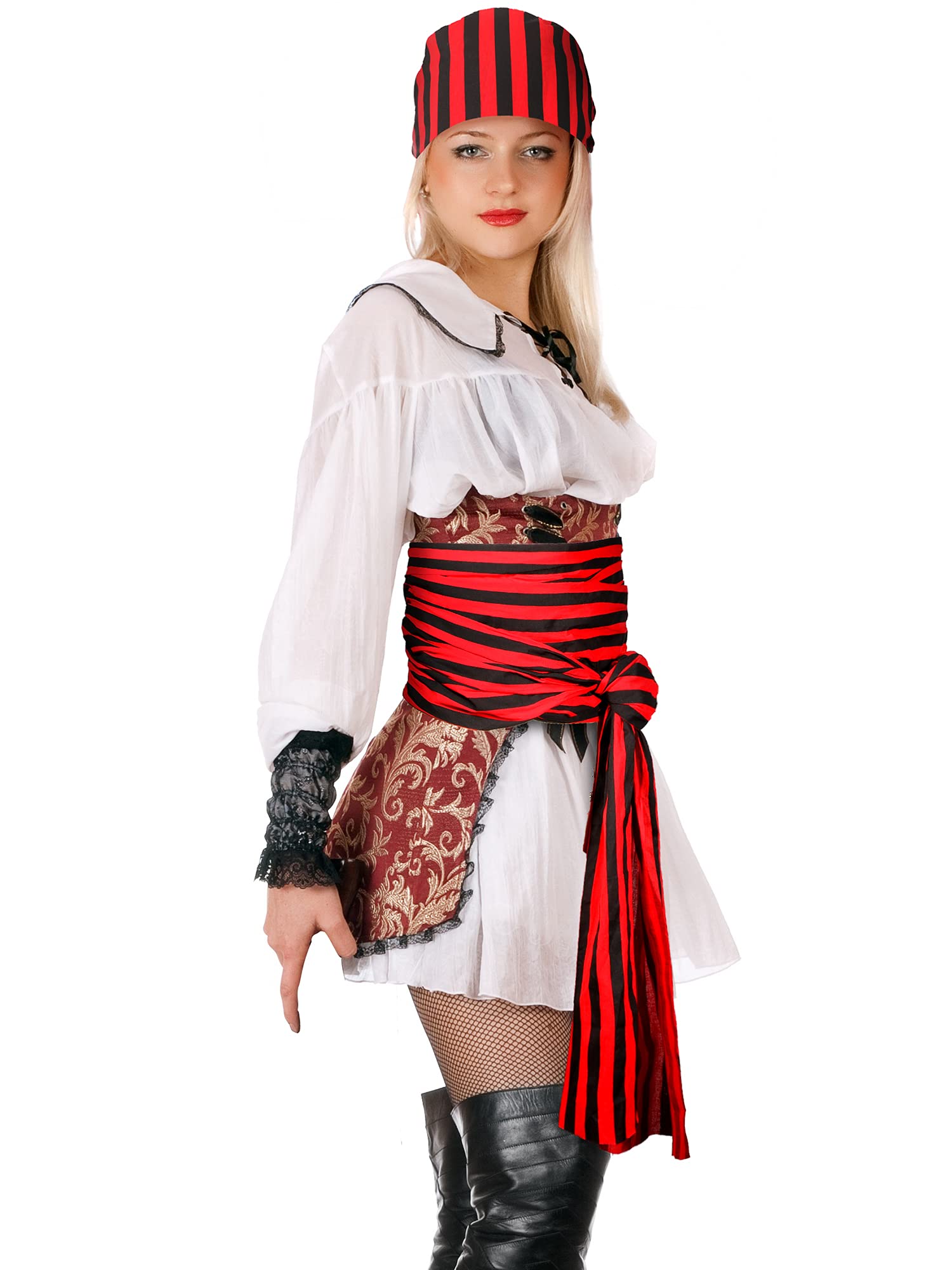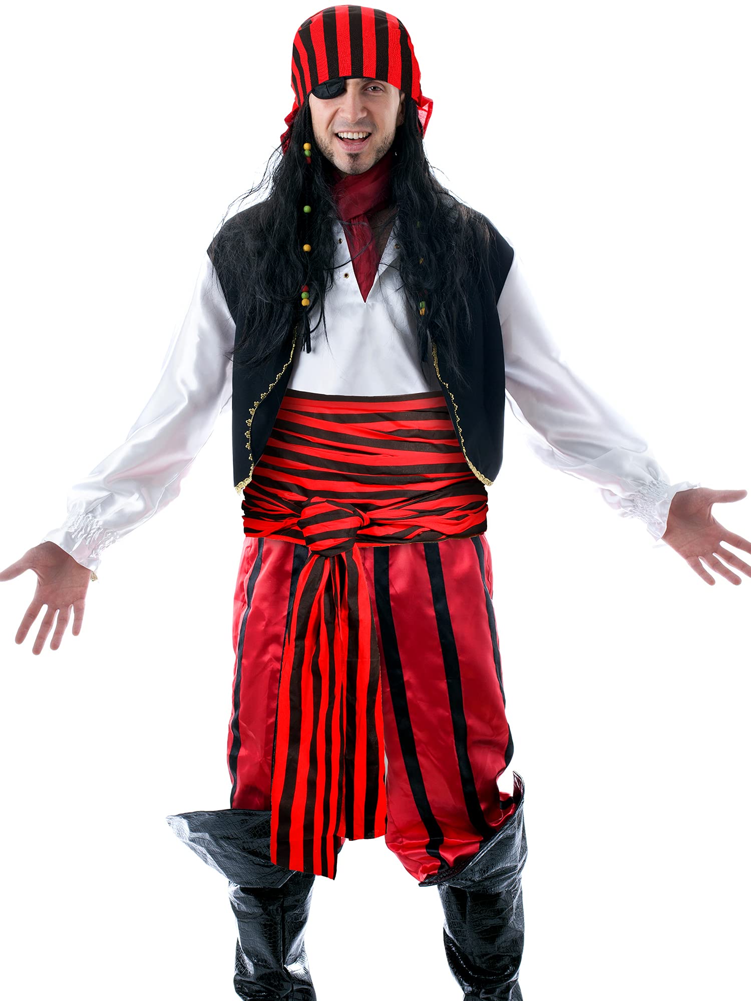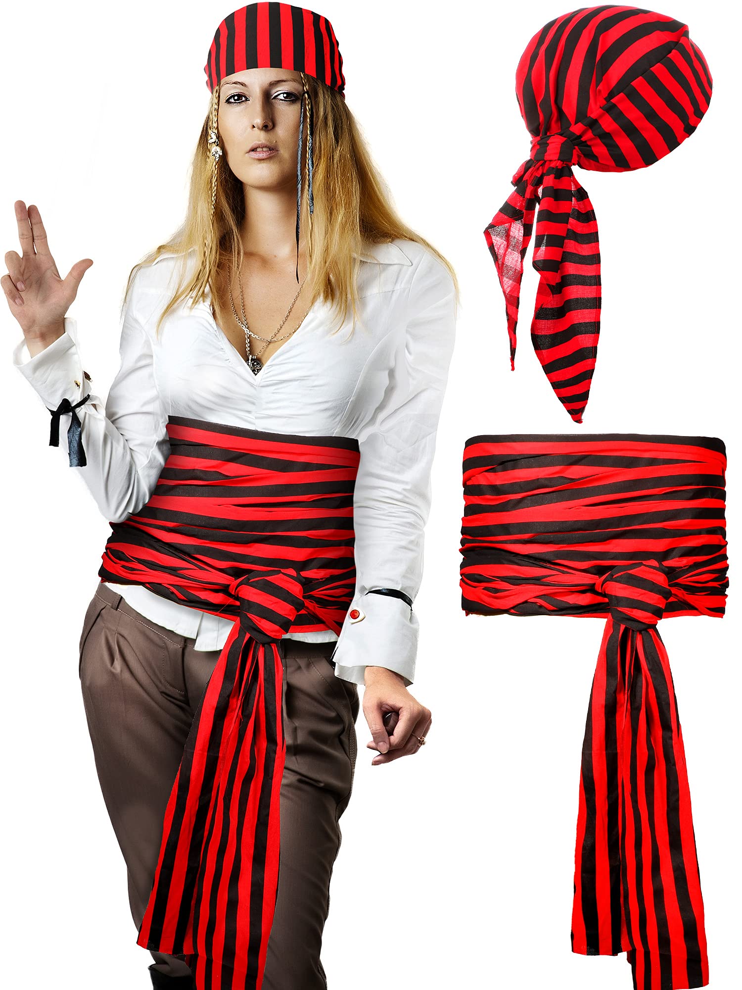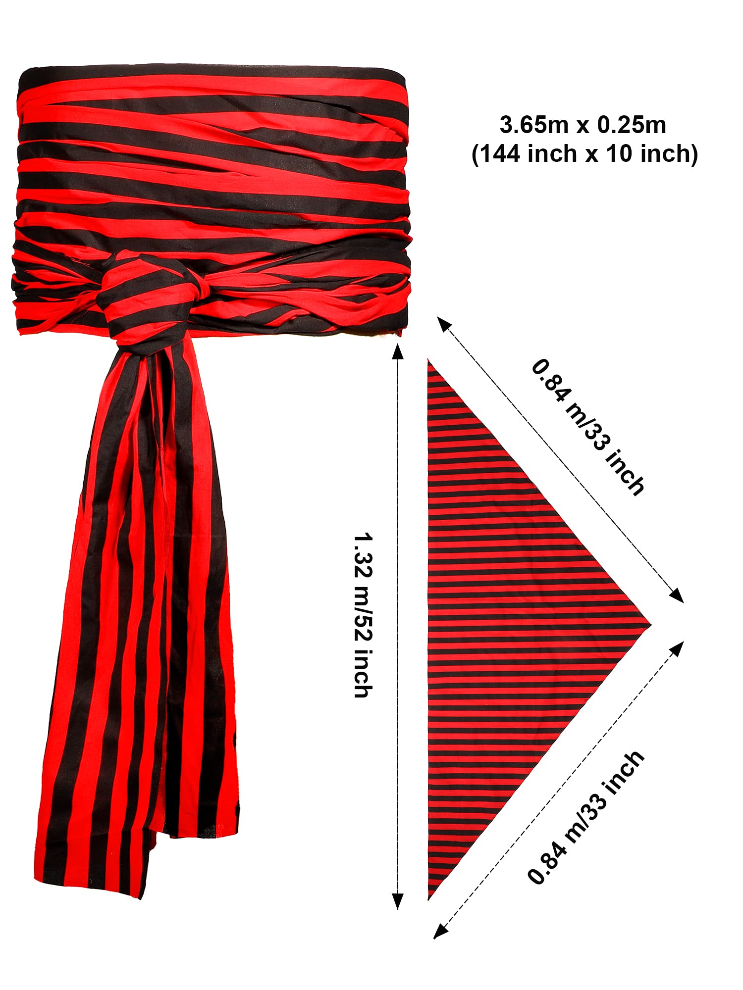 Package includes: 1 piece pirate bandana and 1 piece pirate large sash