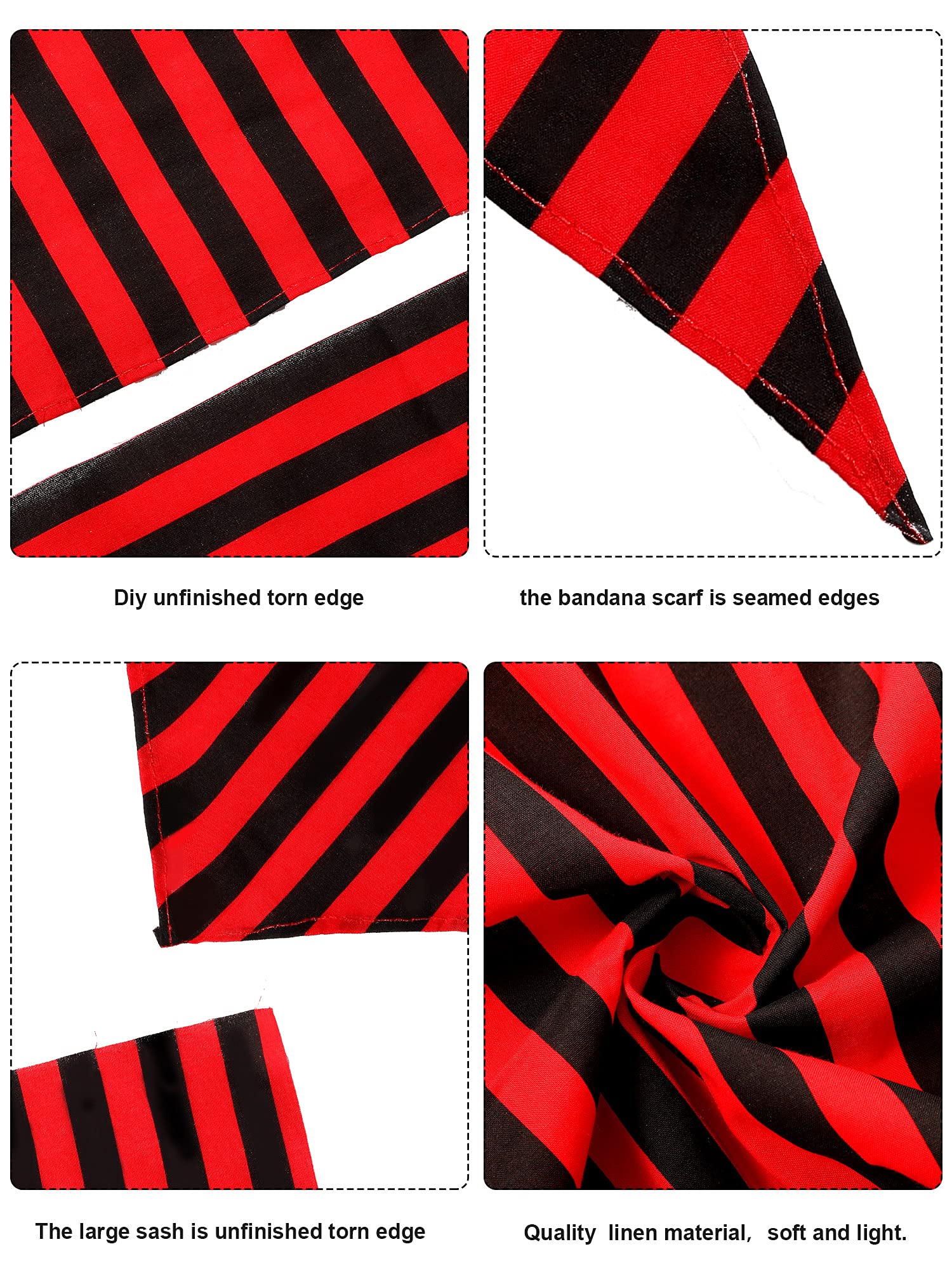 Description Pirate Halloween costume medieval renaissance linen bandana and large sash waist belt accessory Features: Quality material: Our bandana and large sash are all made of linen, soft and light, comfortable and easy to wear. Function: Suitable for pirate dress up parties, pirate role play, Halloween Christmas night, stage performances, cosplay, role play, masquerade, Mardi gras, birthday, photography or daily wear. Specifications: Quantity: 2 pieces Color: as the picture shows Material: linen fabric Package includes: 1 x Pirate bandana 1 x Pirate large sash Note: Please make sure the size before you buy it.