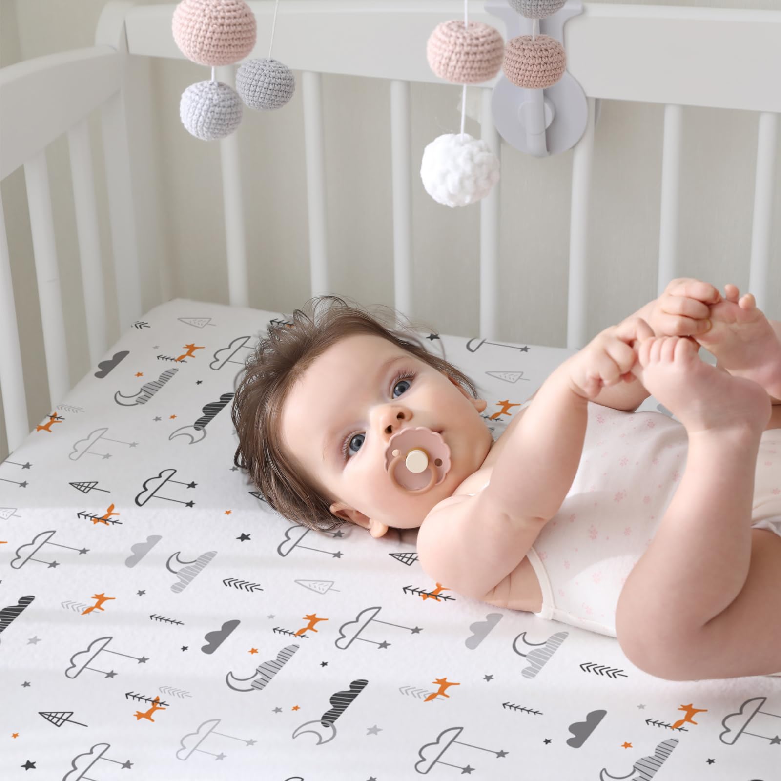 PERFECT FIT FOR CRIB MATTRESSES:Designed specifically for cribs, these crib mattress sheets feature elastic edges for a secure, snug fit on standard crib mattresses. No slipping or bunching, ensuring a safe and comfortable space for naptime and nighttime sleeping.