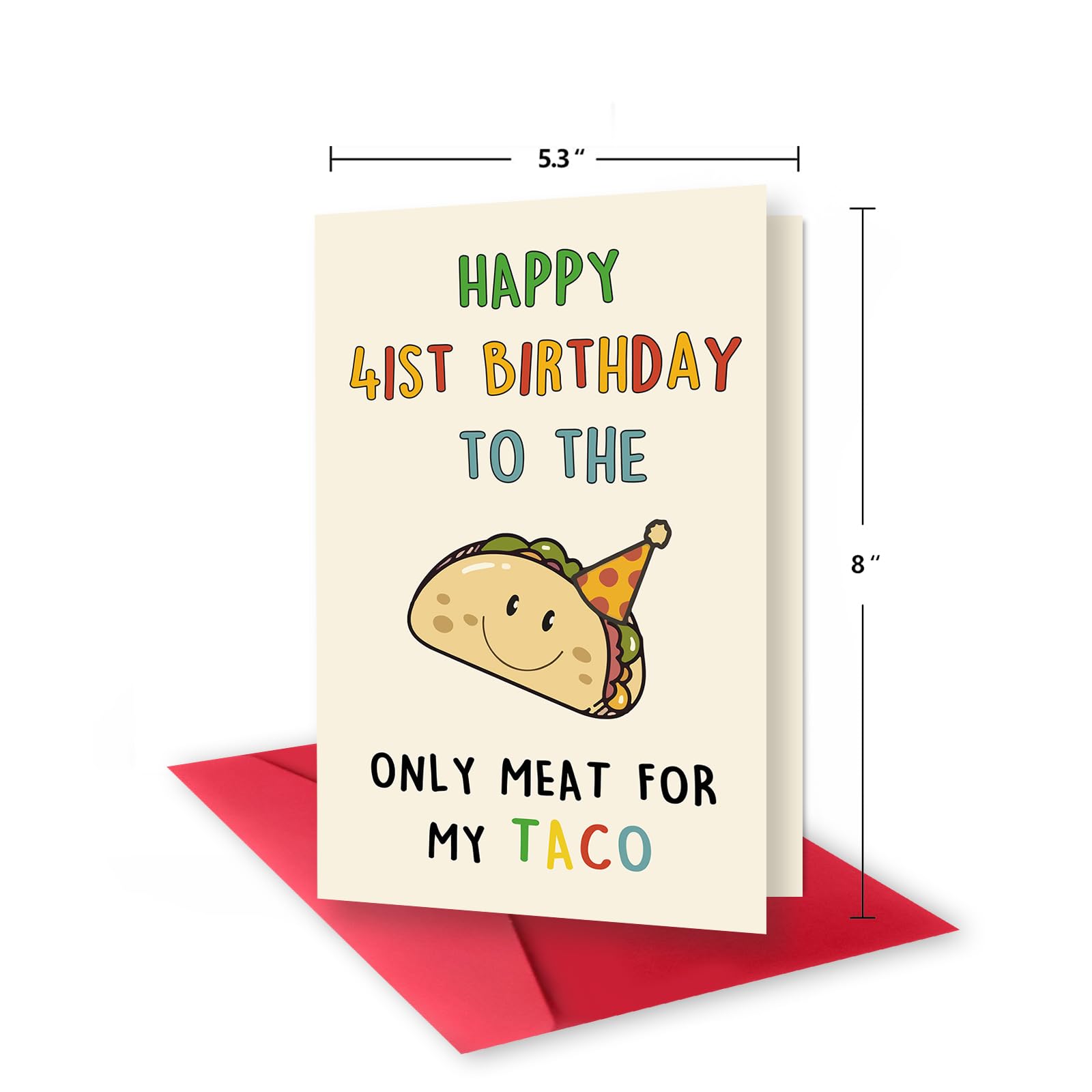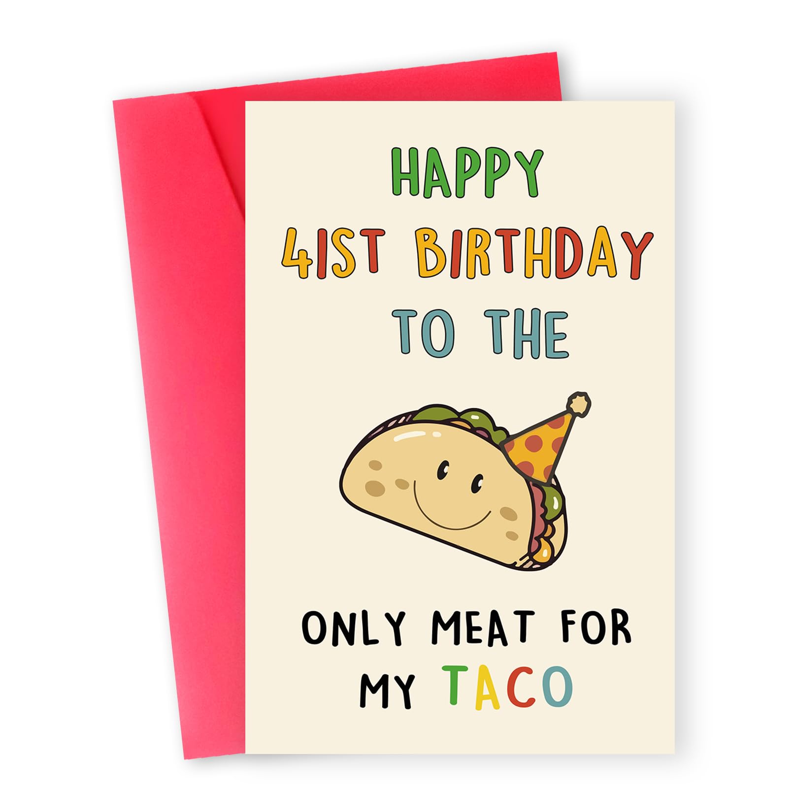 Funny Birthday Card for Him: Taco birthday card the cover reads "Happy 41st birthday to the only meat on my taco," making it an ideal gift for those who want to give him a fun birthday card.