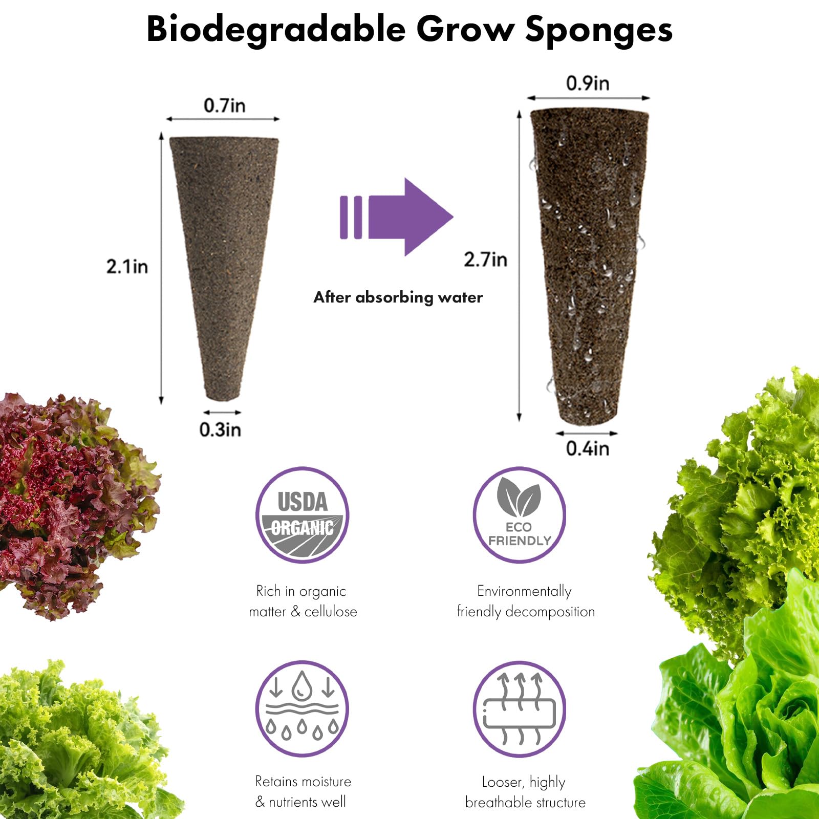 【Natural Organic Sponges】sponges made of peat and organic matter, featuring a loose and porous composition that retains moisture and nutrients, enabling seeds to better growth. Once the plants mature, they can remove the basket and place the sponges directly into the soil, it breaks down harmlessly, eco-friendly.