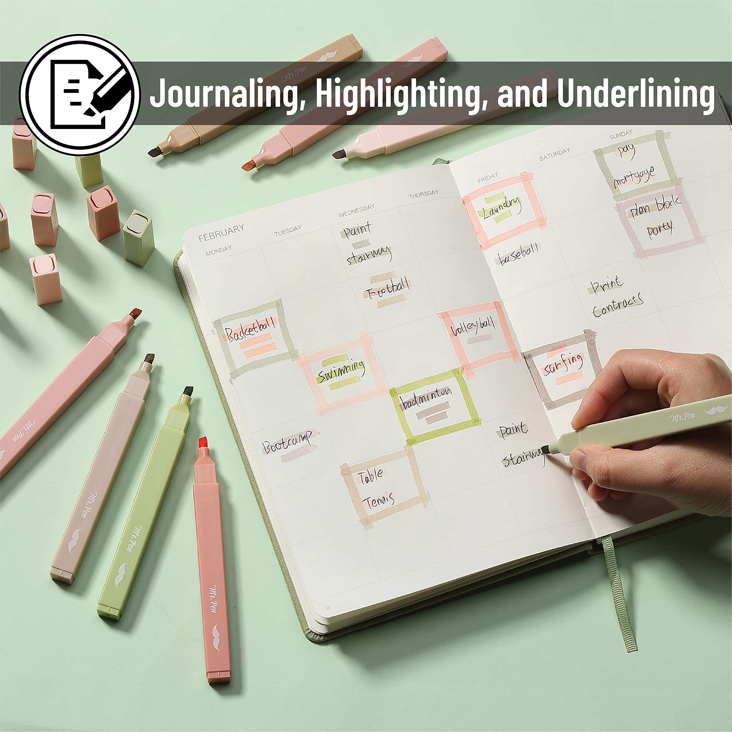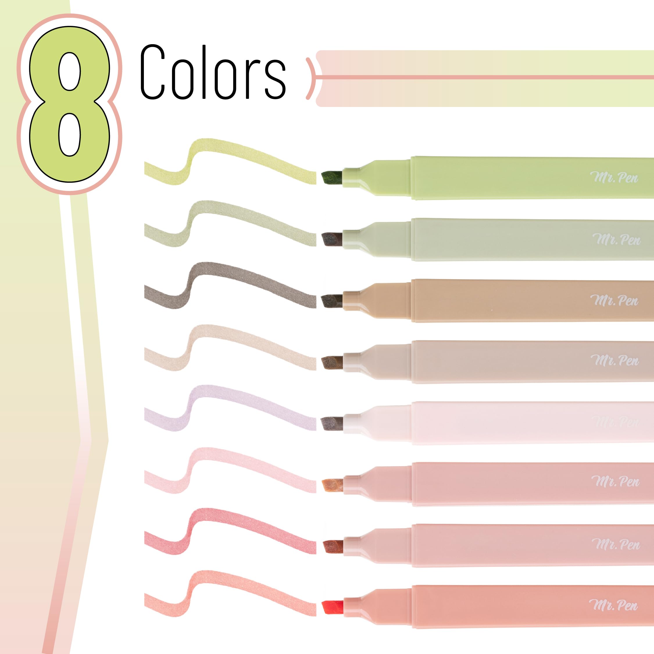 Make your notes and papers pop with our soft and gentle highlighters! This package includes 8 highlighters in non-neon, assorted colors. Our highlighters are perfect for making your work and school life a little bit brighter. The highlighters feature durable, quick-drying ink to prevent smears and smudges. The ink is also resistant to fading so your work stays clean and clear for longer. Our highlighters are comfortable and easy to hold without a sore hand & don't roll around while using. The versatile chisel tip efficiently produces wide and narrow lines. Mr. Pen highlighters are perfect for highlighting your scriptures, notes, journals, or any books you want to read with bright and vibrant colors. These cute highlighters are suitable for school, college, home, office, even travel diary, schedule, work, study, notes, etc. They are also wonderful gifts for family and friends.