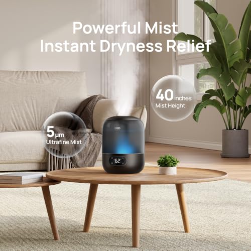 ððððŊð ððŦðēð§ððŽðŽ ðððĄðĒð§ð: This cool mist humidifier for large room releases a mist at 250ml/hr, projecting up to 40 inches high with its 360° rotating nozzle. It effectively covers up to 300 sq ft, making dry air a thing of the past.