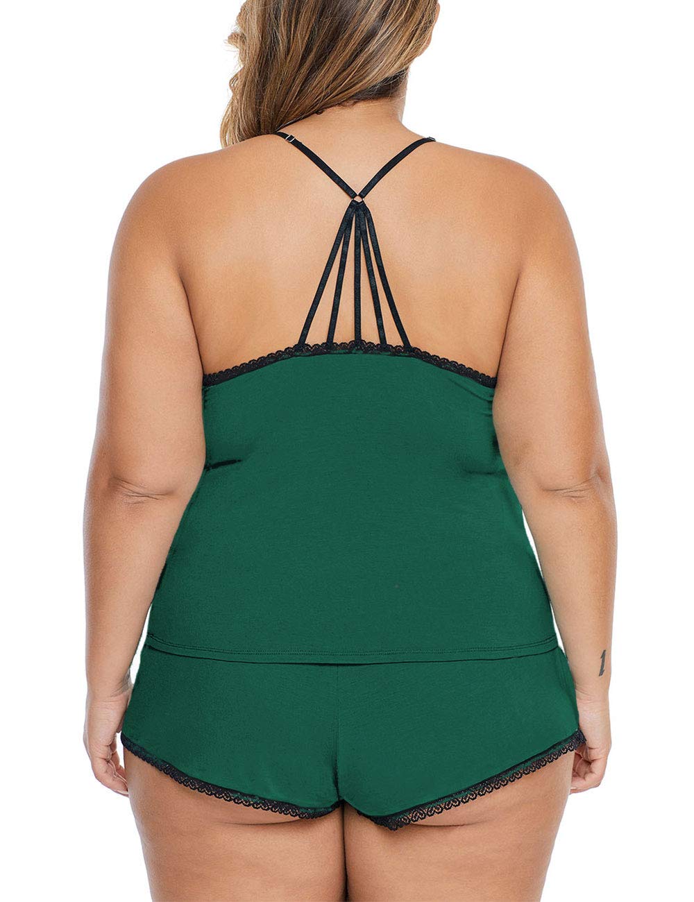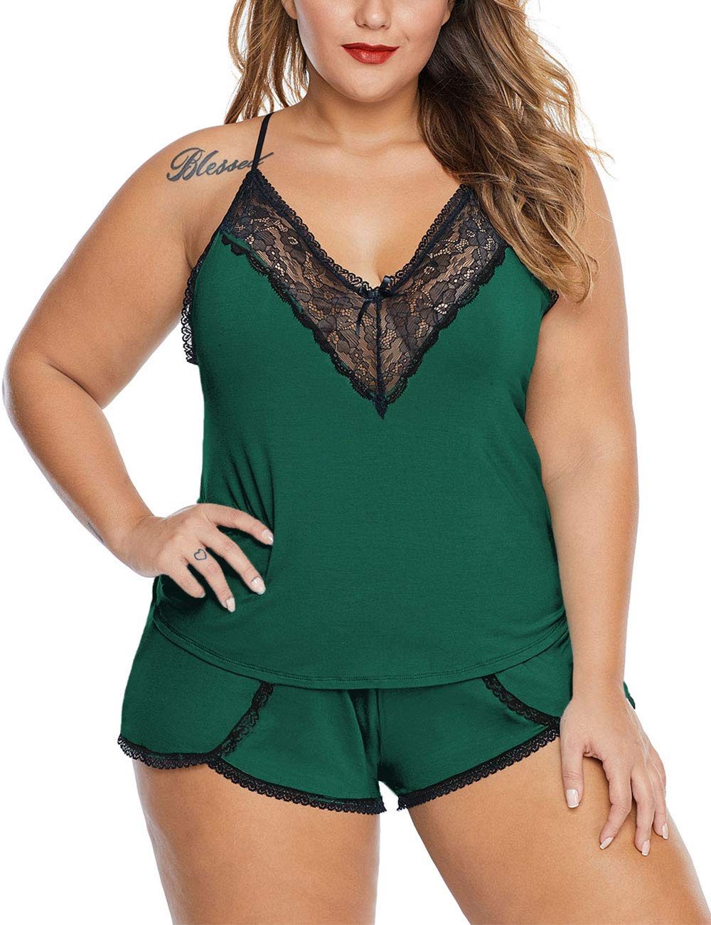 ❀ Features: Plus size cami shorts set,V neckline with lace patchwork and bow details, unique back design, adjustable spaghetti straps, sexy camisole short set, lace pajama cami set, sexy lace pj shorts for women with shorts makes you more sexy and noble.