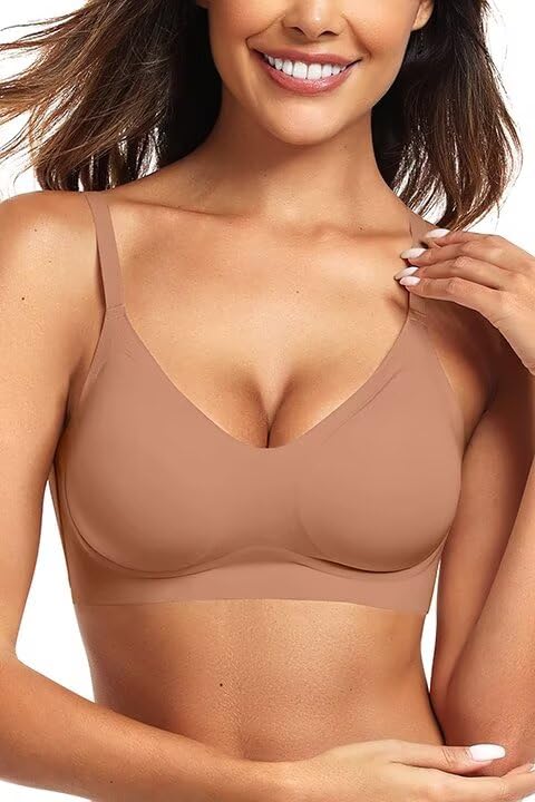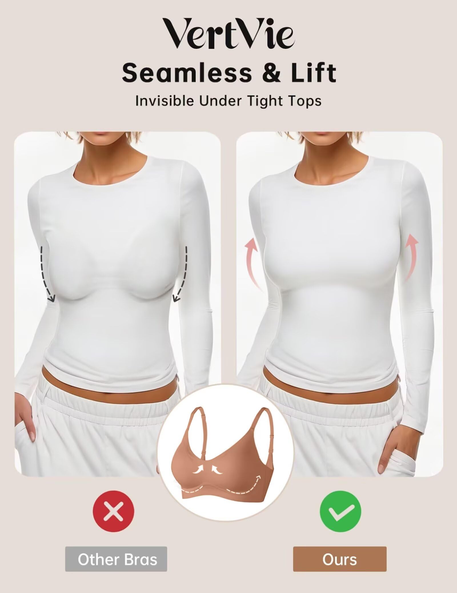 【Seamless Sports Bra】 The bras for women no underwire provide full coverage, support and lift. The sexy V-neck design enhances your bust line. The bra pads are removable, so you can take them out as needed. This everyday T-shirt bra is lightweight, invisible, and non-see-through, hugging your chest perfectly to provide a smooth look under clothing