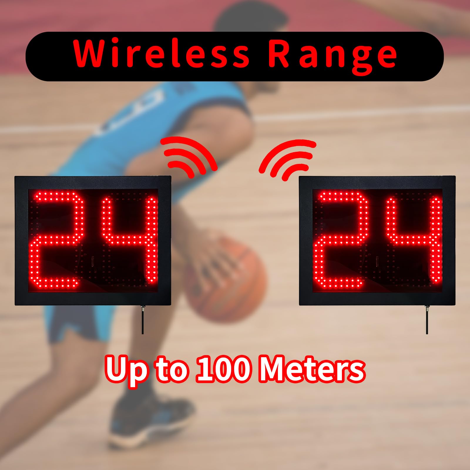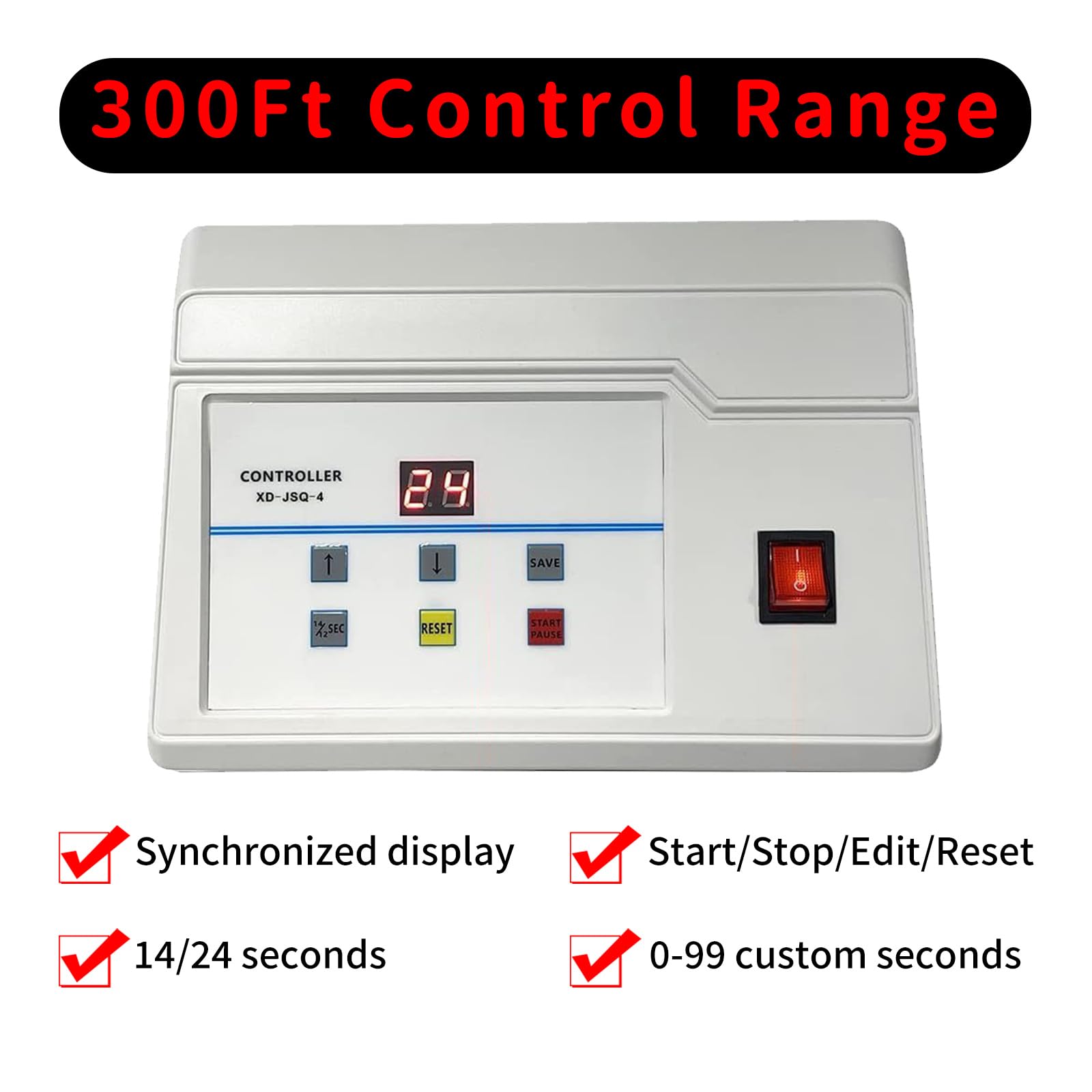 【Easy to Control】One console control two shot clocks, 330ft control distance. It has the functions of 24/14sec, custom XX seconds from 0-99, reset, start, pause and save data. Last 5 seconds accurate to 1/10 second, high timing accuracy, using single-chip microcomputer control.