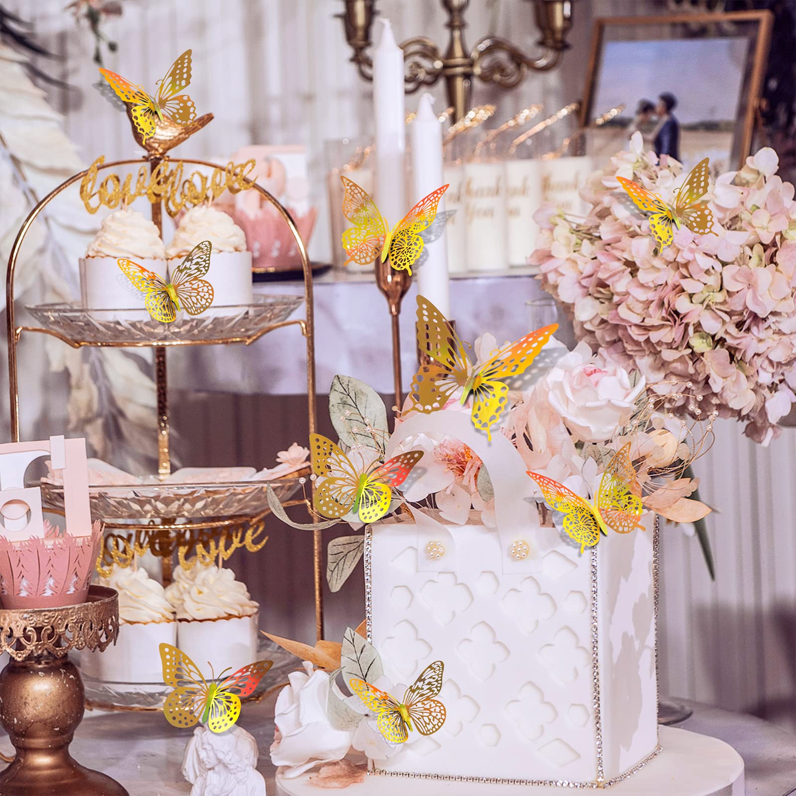 【4 Styles to Decorate】Gold butterfly decorations have 4 styles, 3 sizes. Have butterflies of different styles and sizes all at once, use them to your heart's content!