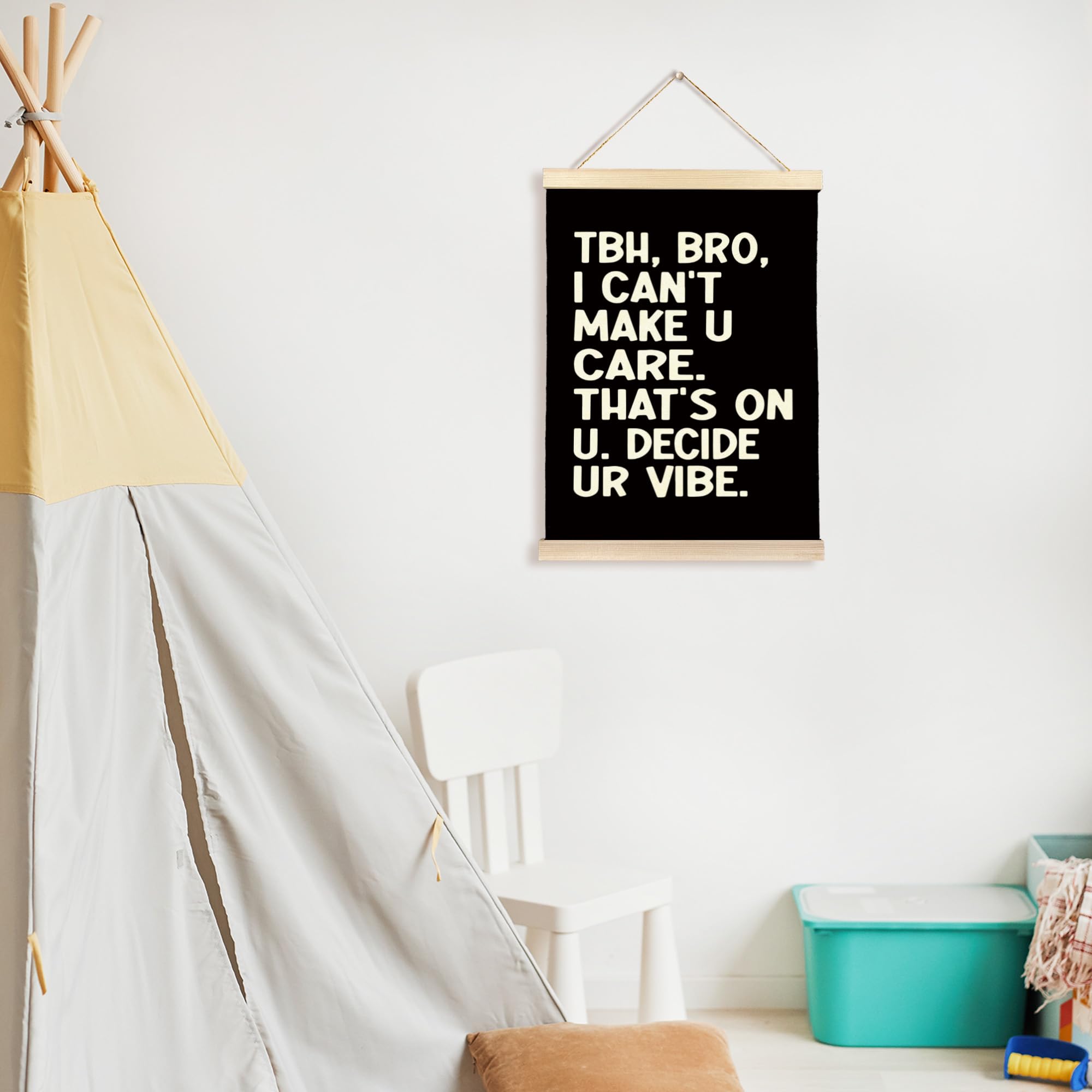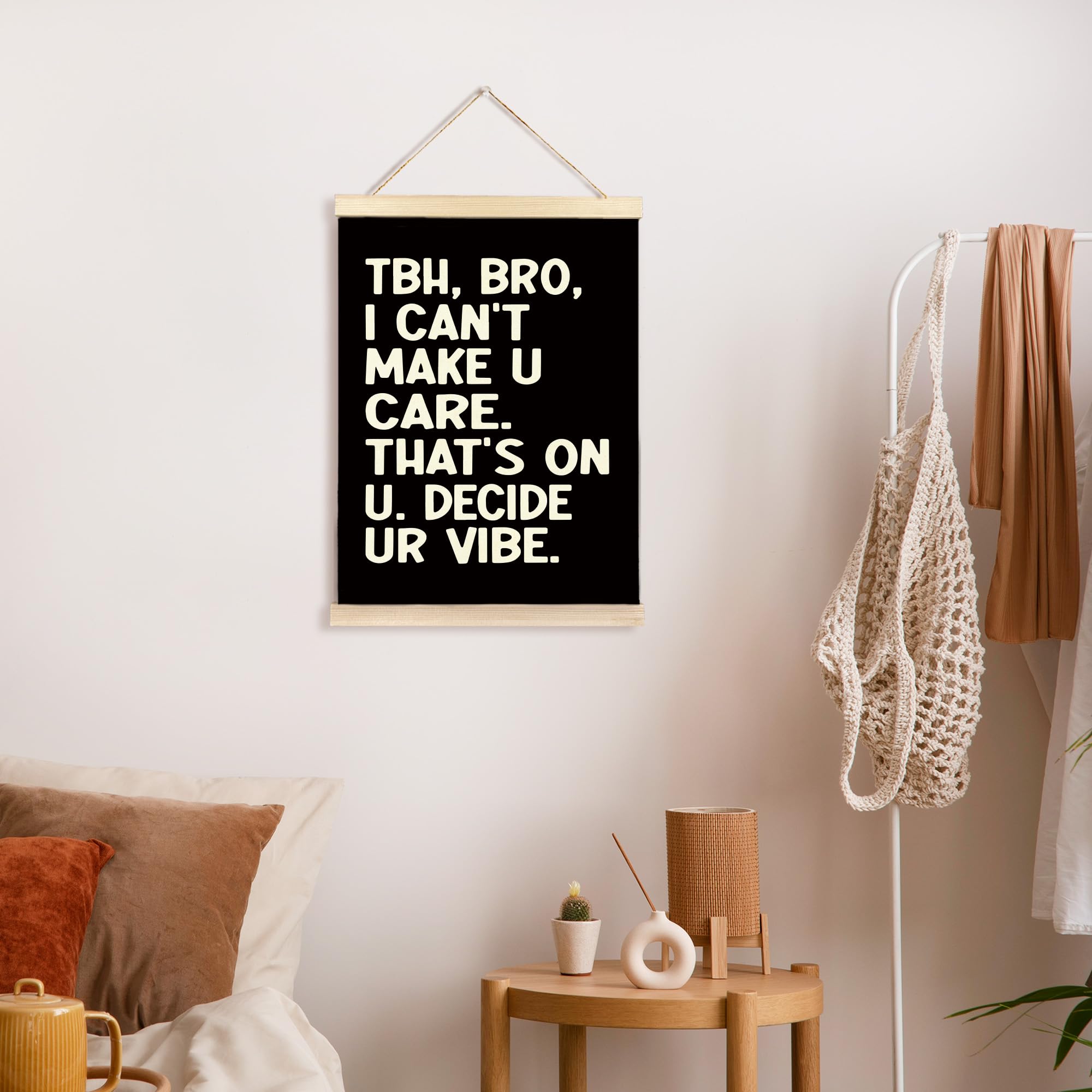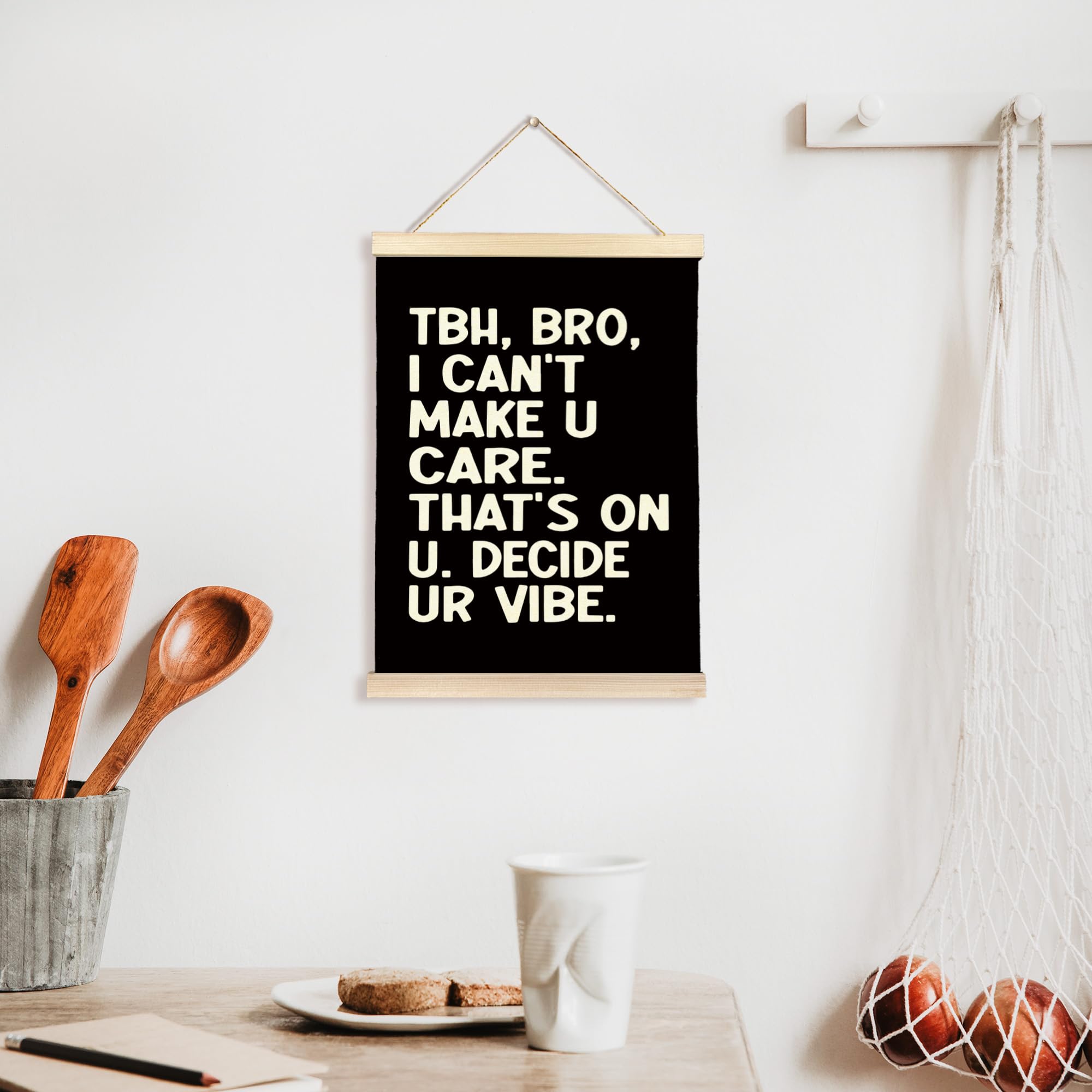 Printed on natural linen fabric with solid wood bars on top and bottom. The wooden frame provides durability, and the linen material enhances the overall aesthetic appeal.