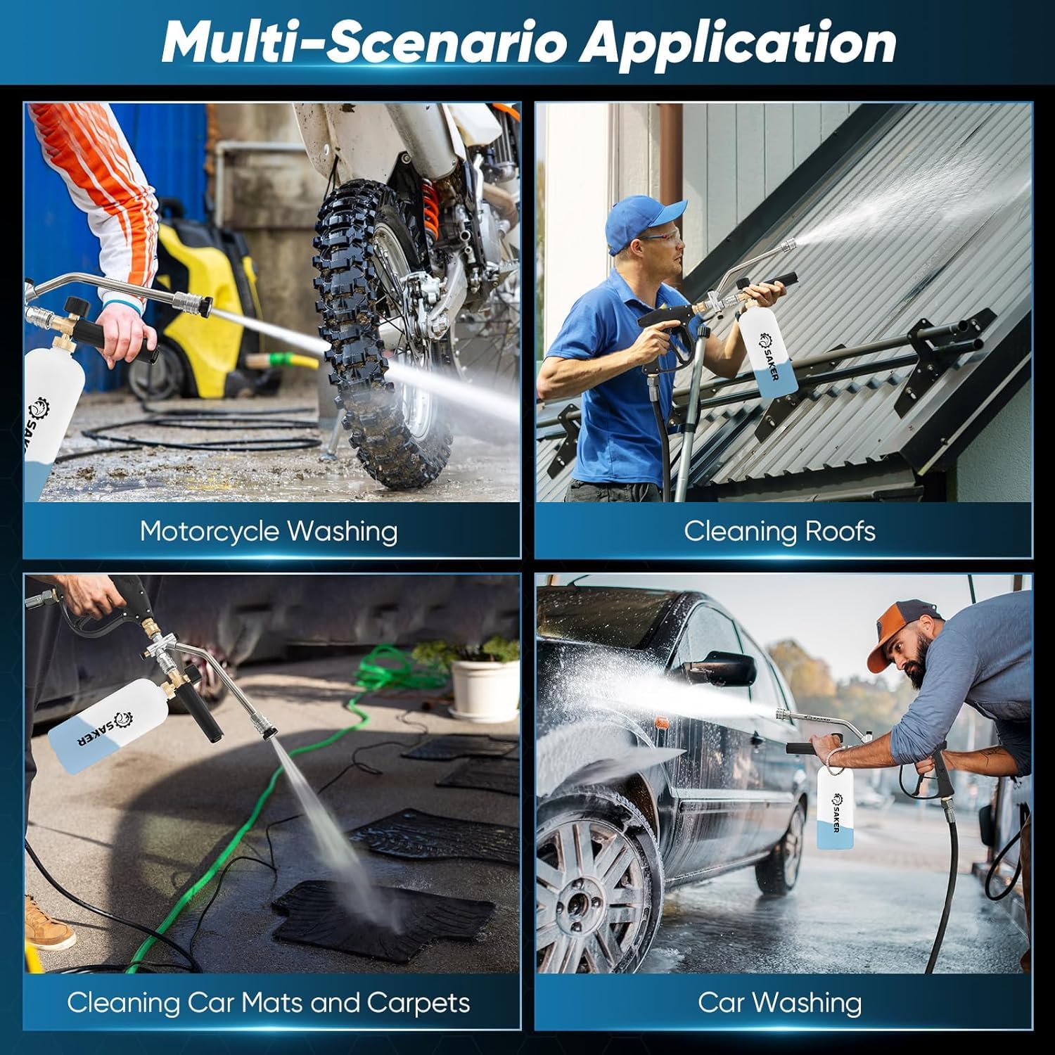 🧼【MULTI-FUNCTIONAL CLEANING】Saker Foam Cannon Dual Connector Accessory is designed for versatility, making it ideal for various cleaning tasks. Whether you're washing your car, cleaning windows, or even tackling stubborn grime on outdoor surfaces, this foam cannon delivers exceptional performance.