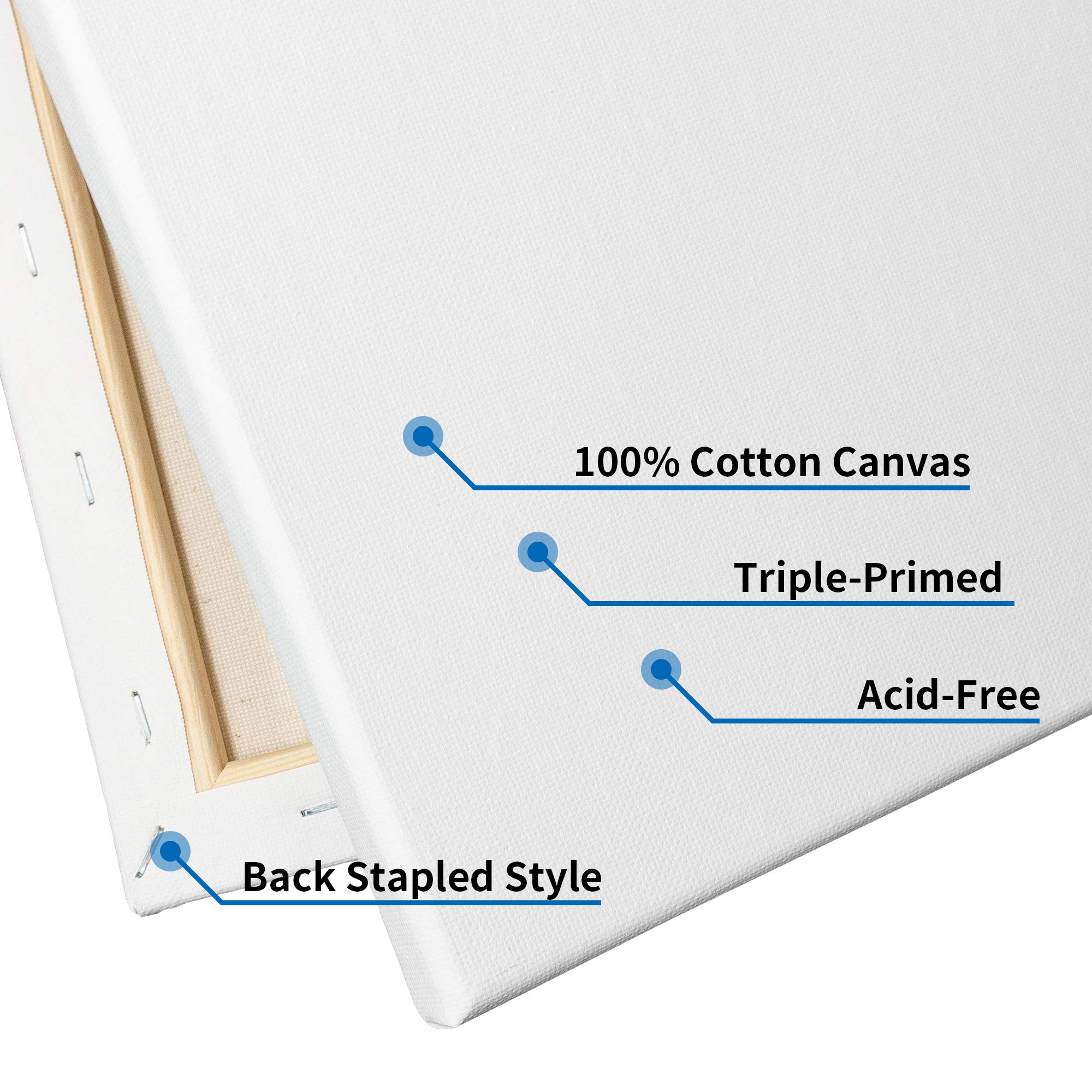 100% PURE COTTON CANVAS: Cotton Makes the Ideal Art Surface.It is made of cotton without rinsed with any alkaline chemicals,it keeps the natural tone and the fiber flexibility of the cotton yarns with high tension strength,so brushes just glide right over them and make painting effortless.