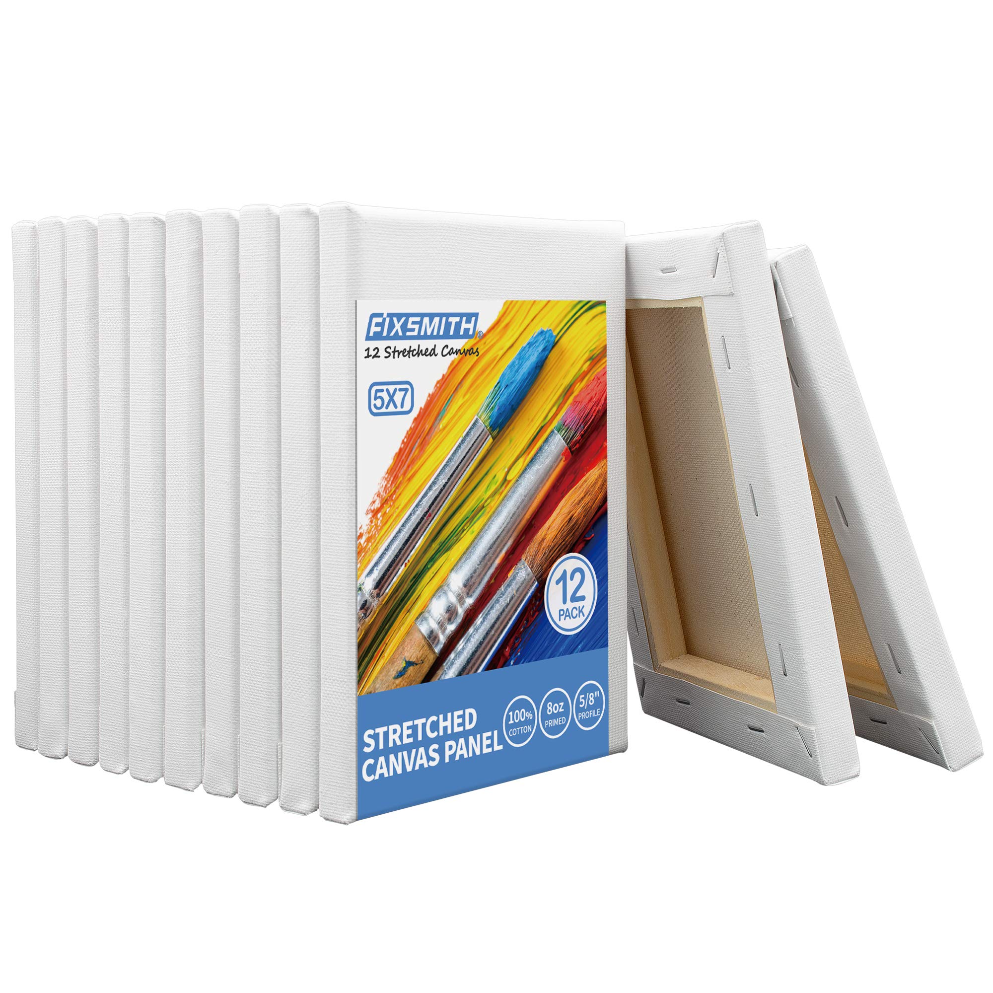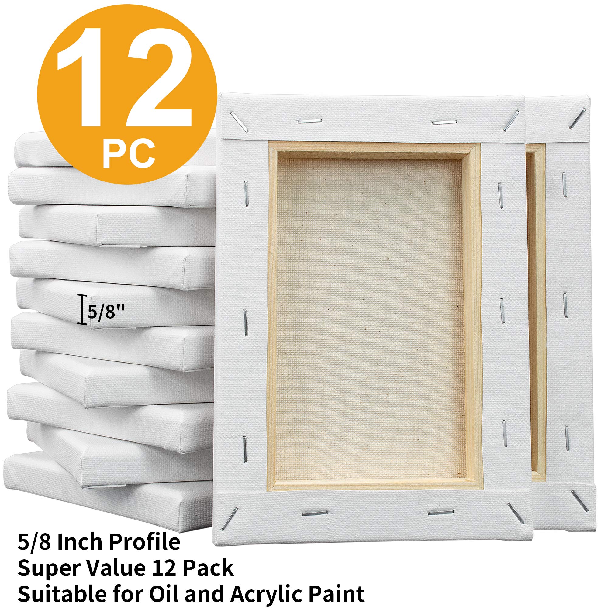 TRIPLE PRIMED GESSO: Does not crumble or crack.Each stretched canvas in this set is pre-coated with 8 oz. of acid-free acrylic gesso. So you can start painting and creating as soon as you remove the wrapper. Suitable for oil, acrylic and other painting media. UNPRIMED WEIGHT- 4 oz,PRIMED WEIGHT– 8 oz, BOARD SIZE – 5 x 7 inch 5/8" Thick Super Valued PACK – 12.