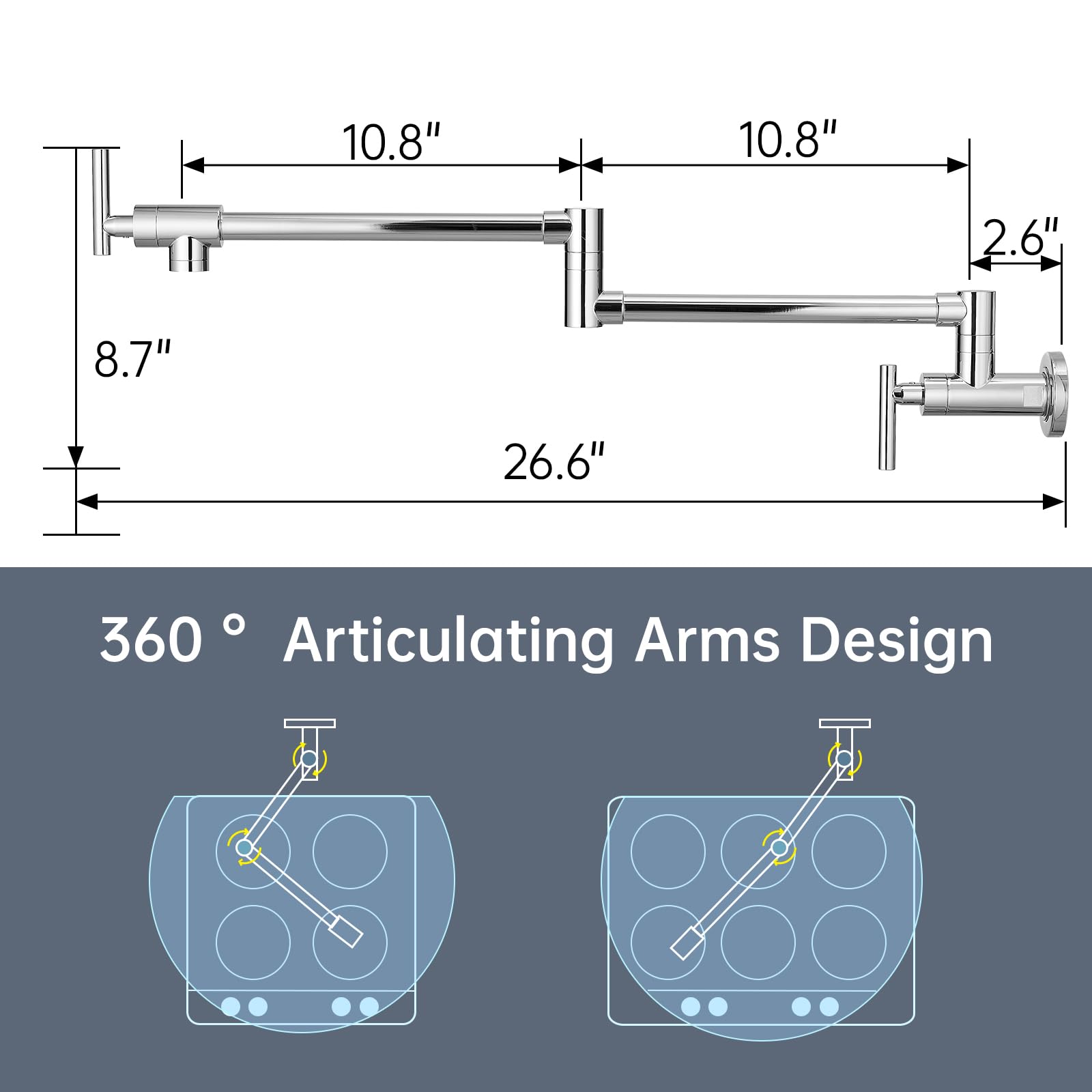 Perfect for Filling Pots: Faucet has 360° swing arm two handle design, can cover more than 4 stoves. GIMILI Pot Fillers are the perfect addition to any kitchen, can be quickly filled on the stove without having to walk from the stove to the sink