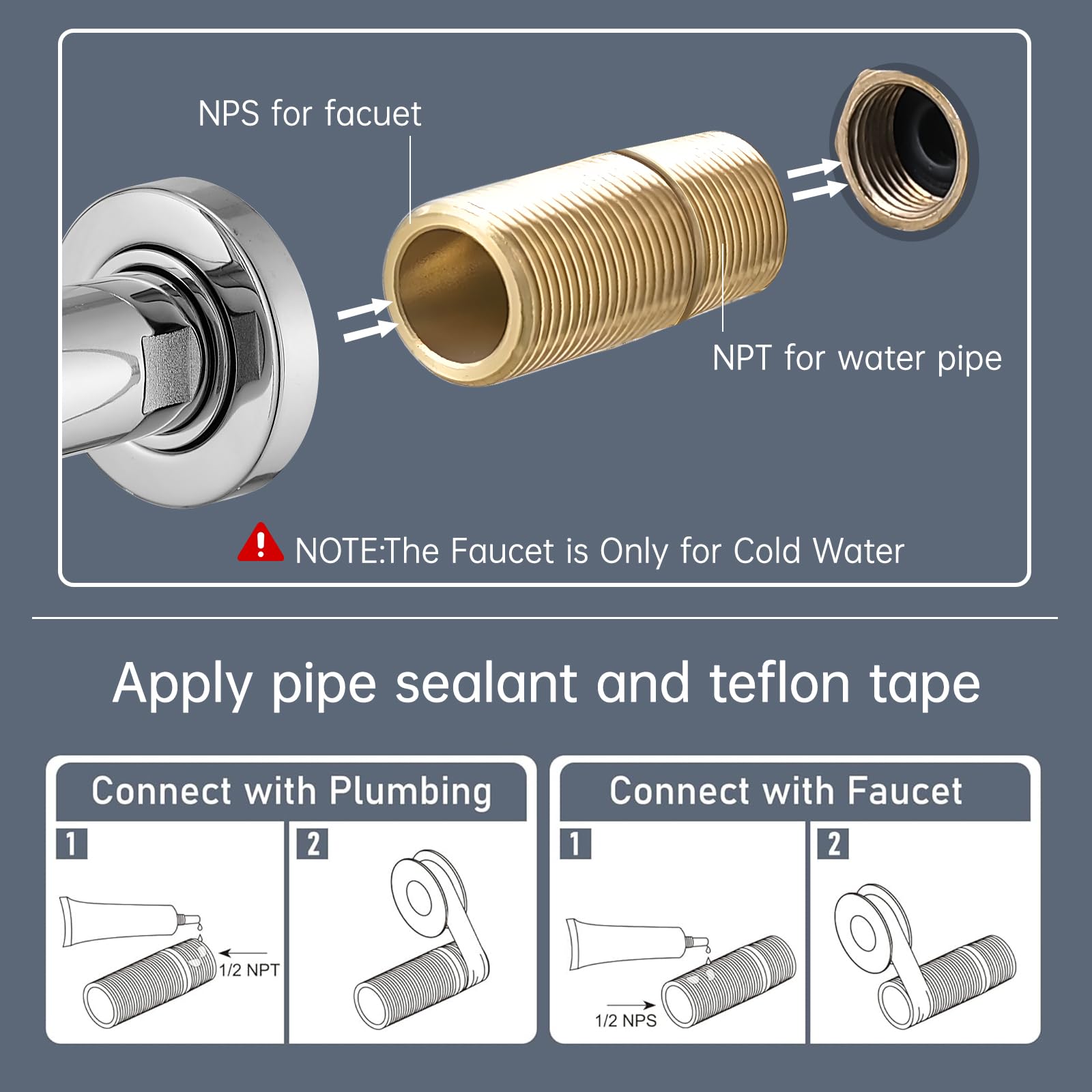 Simple to Install: Only 5 simple steps to install the faucet, No need for plumbers and professional tools, DIY installation can be done in just 20 minutes. Use for only cold water