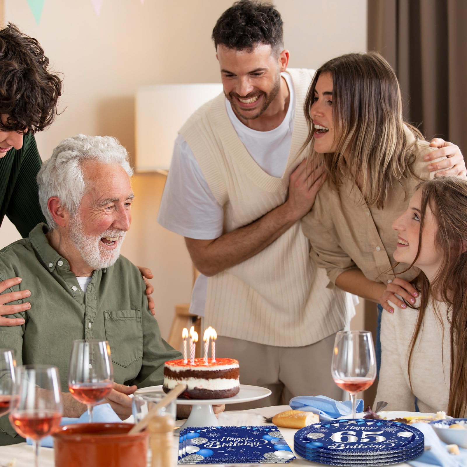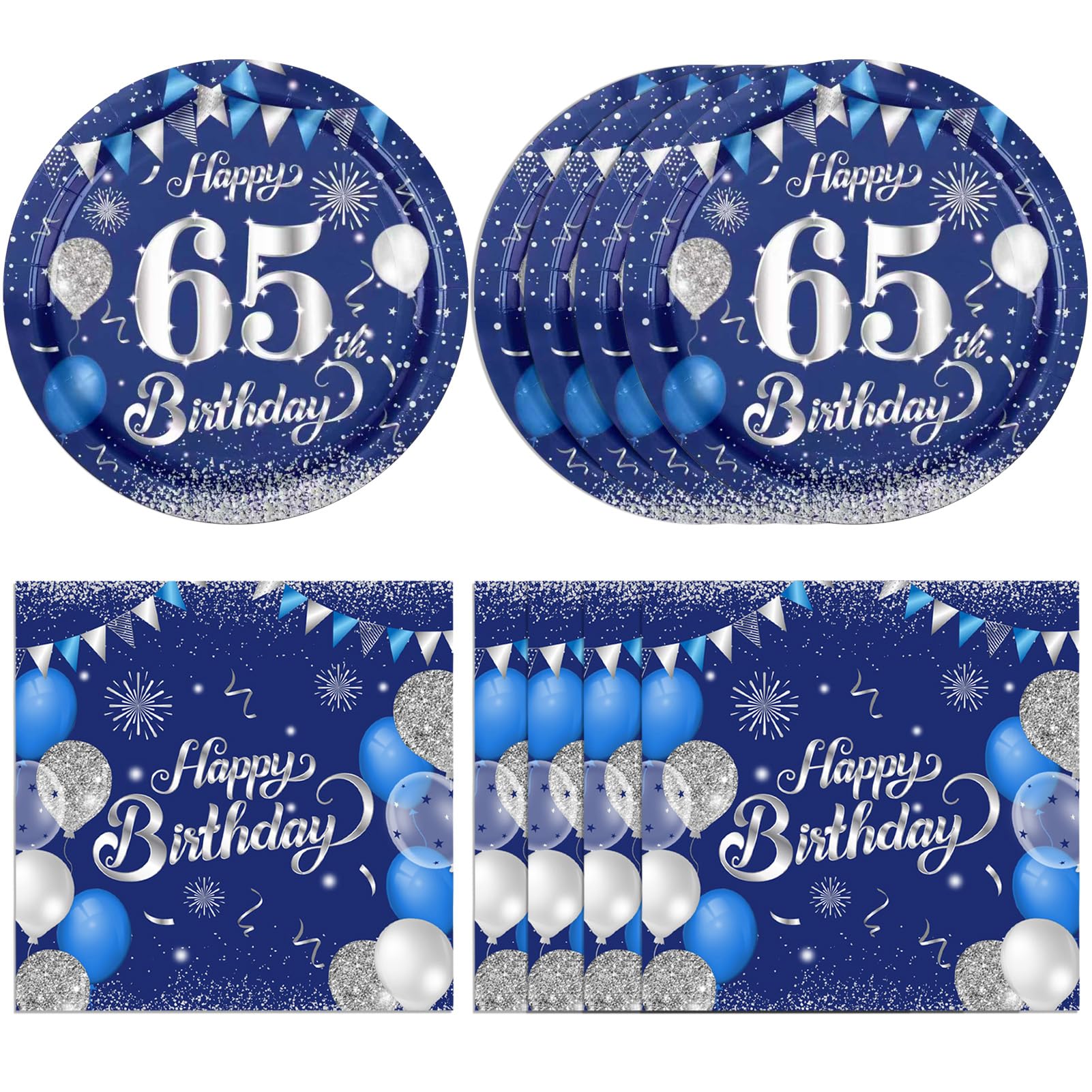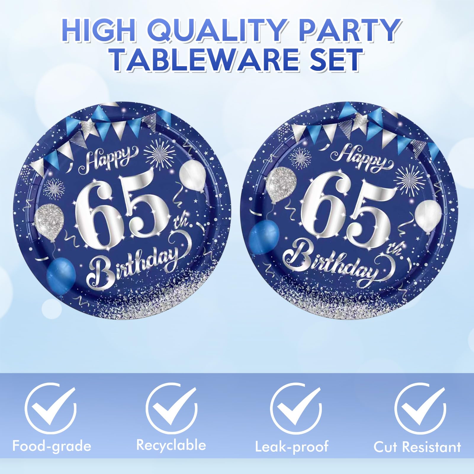 【Premium Material】All of our 65th birthday plates and napkins are made of food grade material, non-toxic and odorless. Advanced printing technology ensures that the patterns and colors are bright and long-lasting and will not fade. Create a warm atmosphere for your party,blue silver 65th birthday gifts will be unforgettable and impressive party decorations for you.