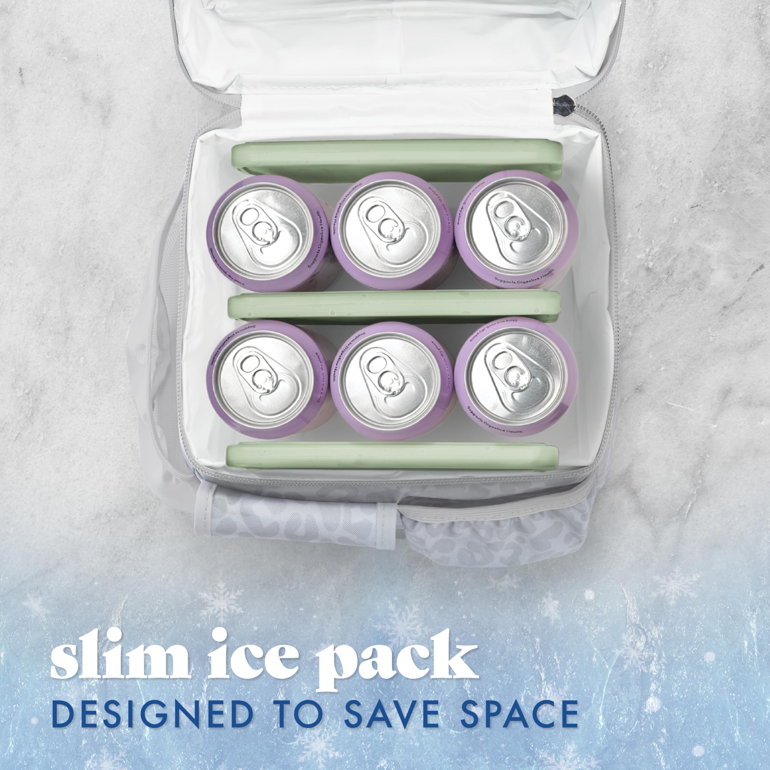 XL REUSABLE ICE PACK - Set includes 4 slim ice packs for lunch boxes. Sized at 4.75” x 0.5” x 7” their ultra-thin design slides easily into any bag for max chill without the bulk. Made in neutral colors to match our stylish fit & fresh lunch bags.