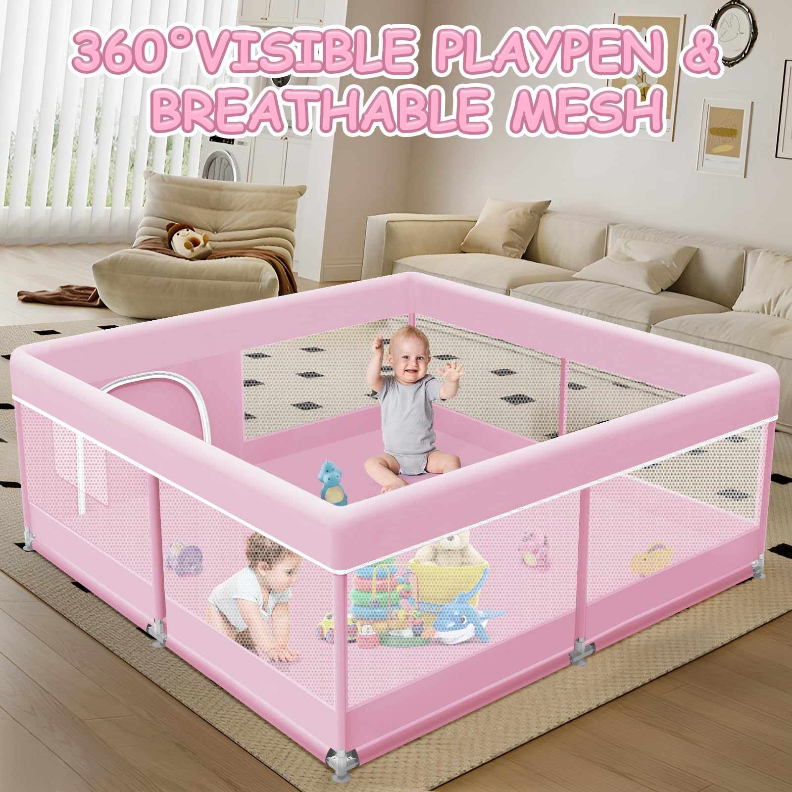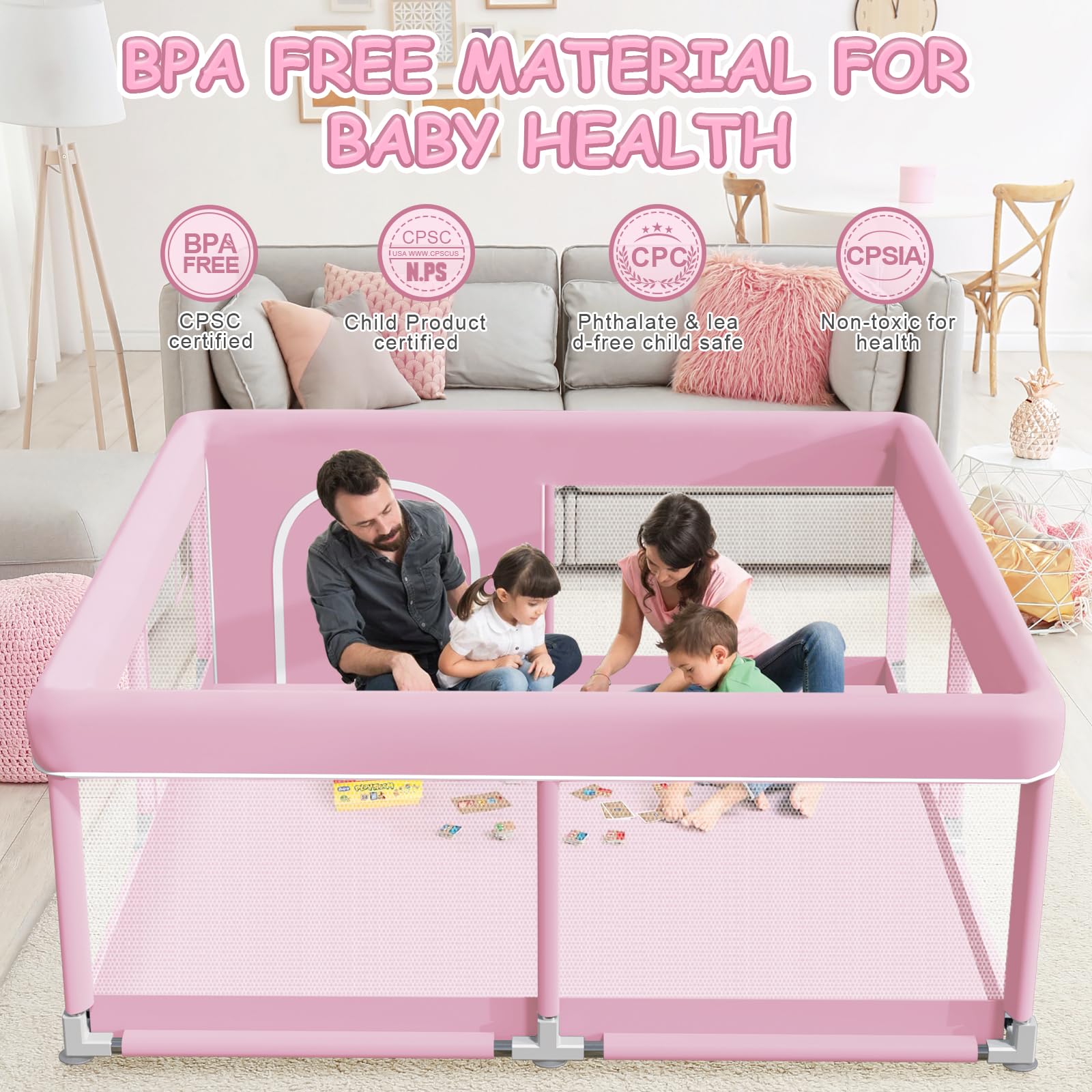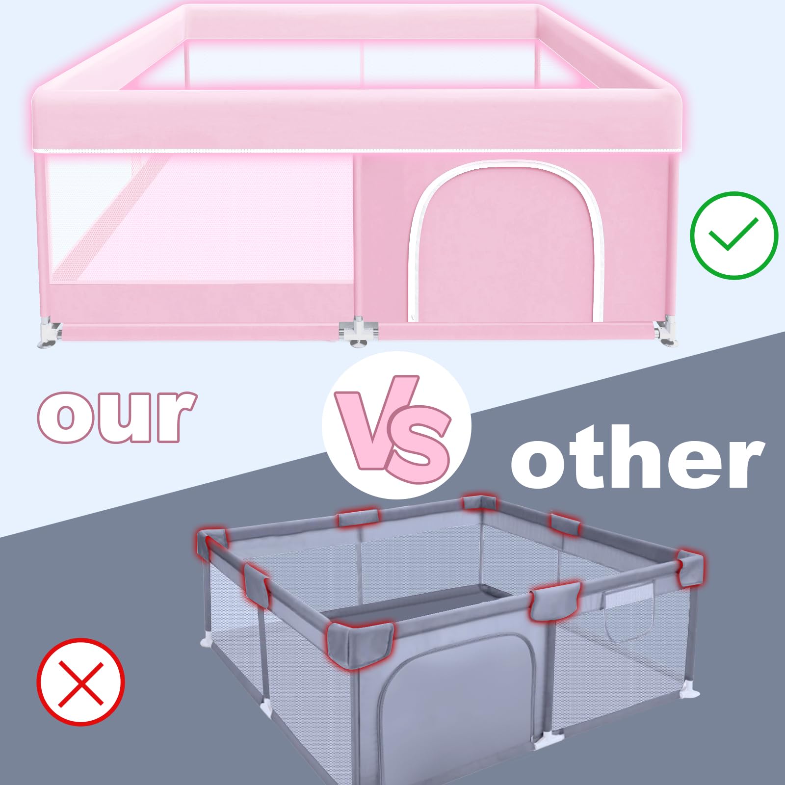 『LARGE BABY PLAYPEN』50 x 50 inch large baby playpen provide enough area for 2 toddlers to play at the same time. Whenever your baby uses this indoor and outdoor activity, which is great to share quality time with your family, and convenient for baby to walk, crawl, and explore.