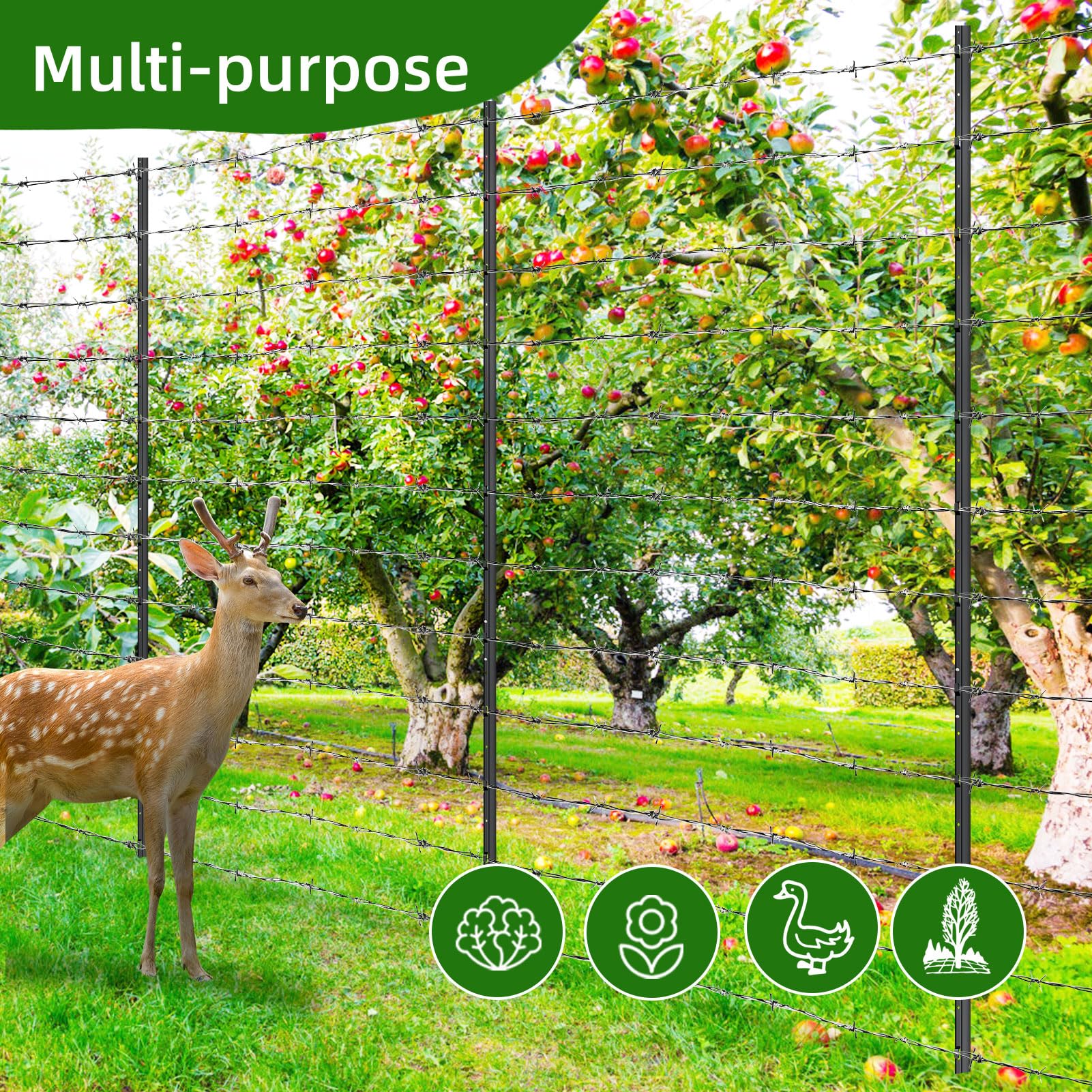 Multi-Purpose Use: These black wire fencing posts are used for fencing path, garden, yard or farming. Create a protective border for vegetable, flower beds or other plants. Build an animal wire barrier for big and medium-sized dogs, poultry, rabbits or other animals. Use these metal T-post as the chicken wire fencing application, as the supports of a fruit bush, as a sign post or driveway mark.
