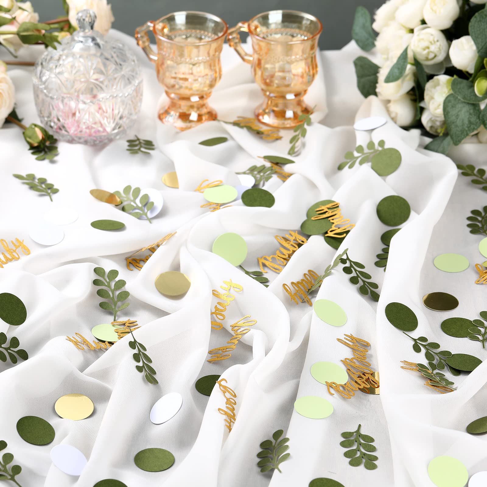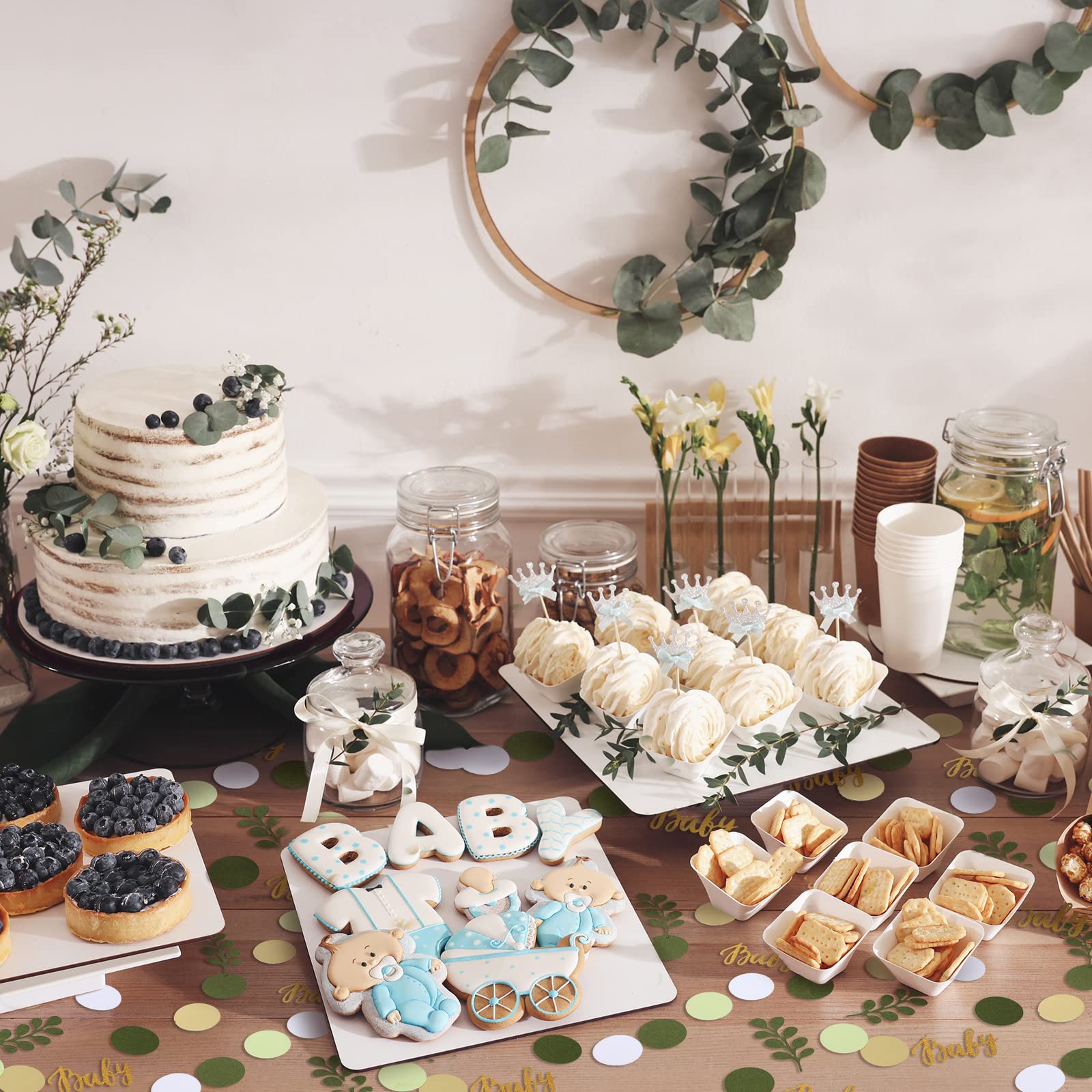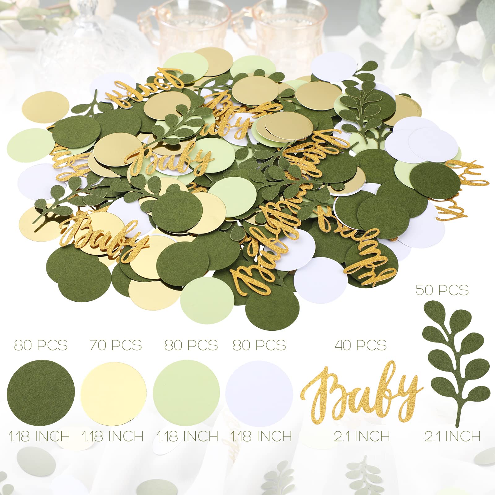 Package Includes: you will receive 400 pieces of baby shower table decorations confetti, including 4 different colors round paper confetti, gold baby confetti and green eucalyptus; Ample quantity and fresh combination to meet your various decorative demands