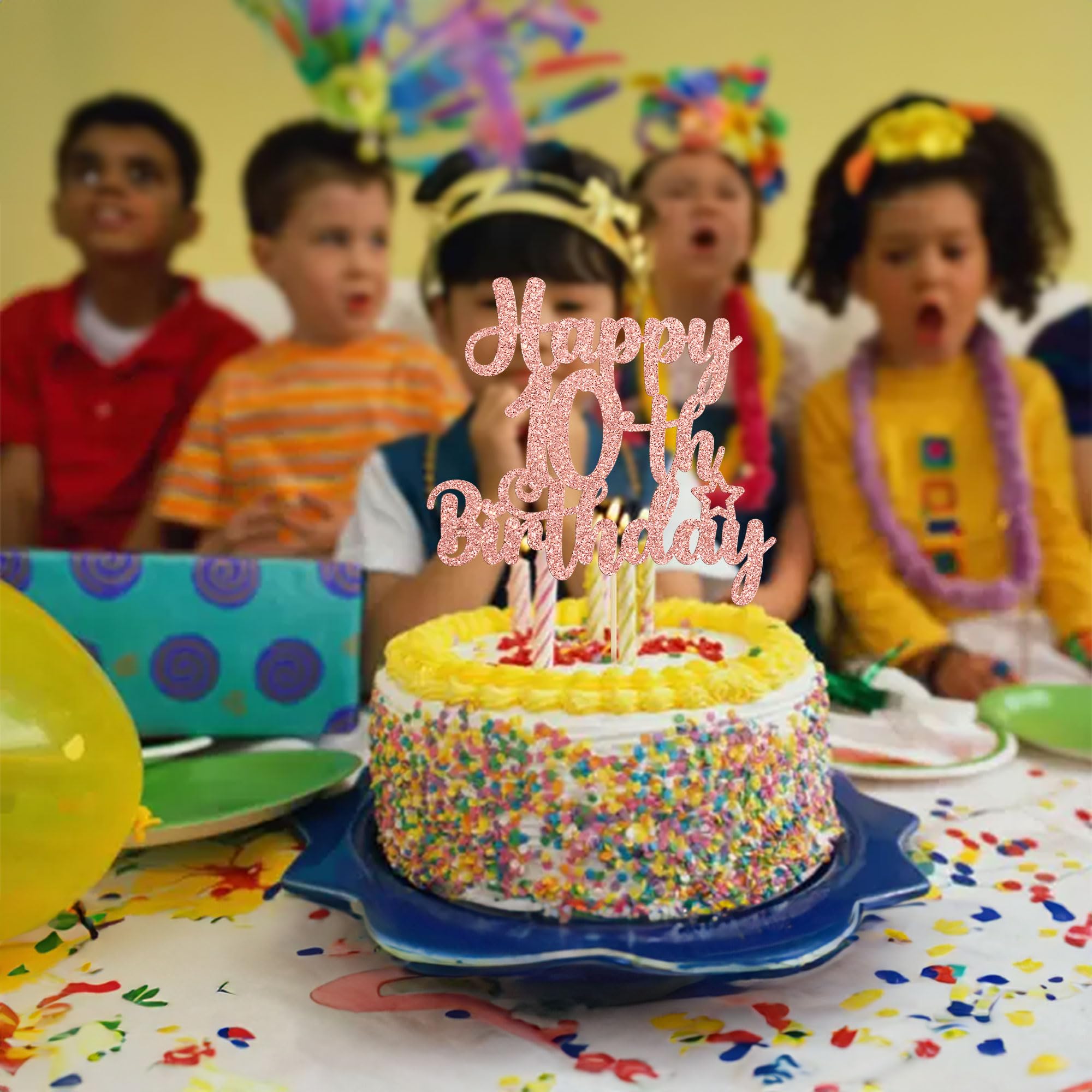 -Package included: 1Pcs Happy 10th Birthday Cake Topper. Comes with assembled, so you can insert into your cake directly, which make your cake more interesting.
