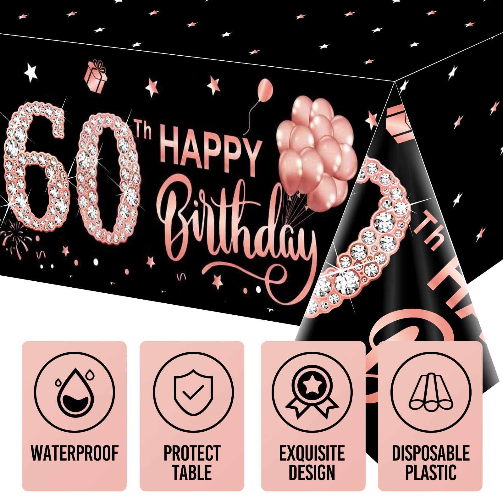 You Will Get: 3Pack rose gold 60th birthday tablecloth decorations for women. 54 x 108 inches, suitable for covering most rectangular desktops. Note: Please measure the table size in advance