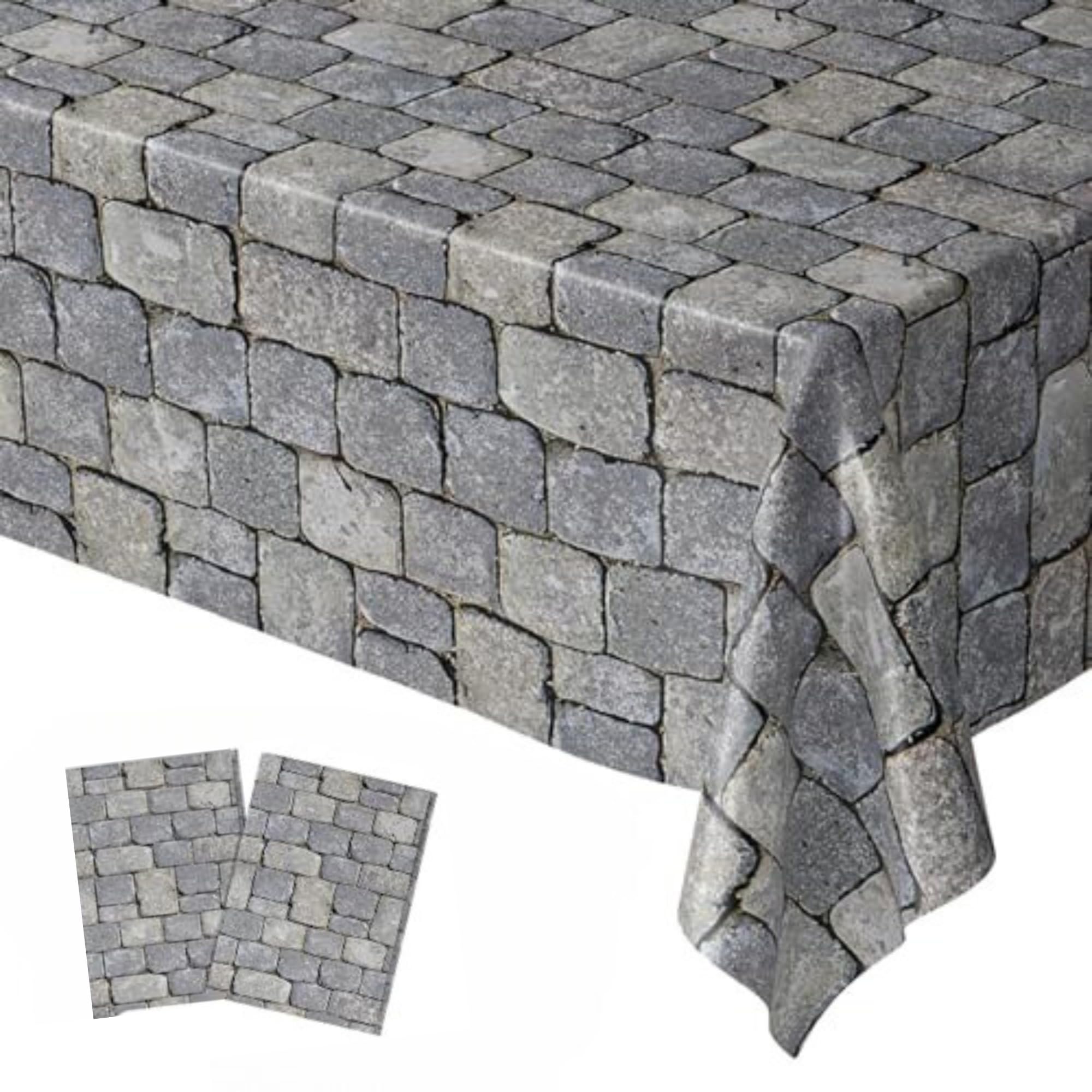 [APPROXIMATELY 108” X 54”] Make lasting memories and drape your party table in brick style with these awesome cobblestone table cloth that measure approximately 108” x 54” each and work with square party tables.