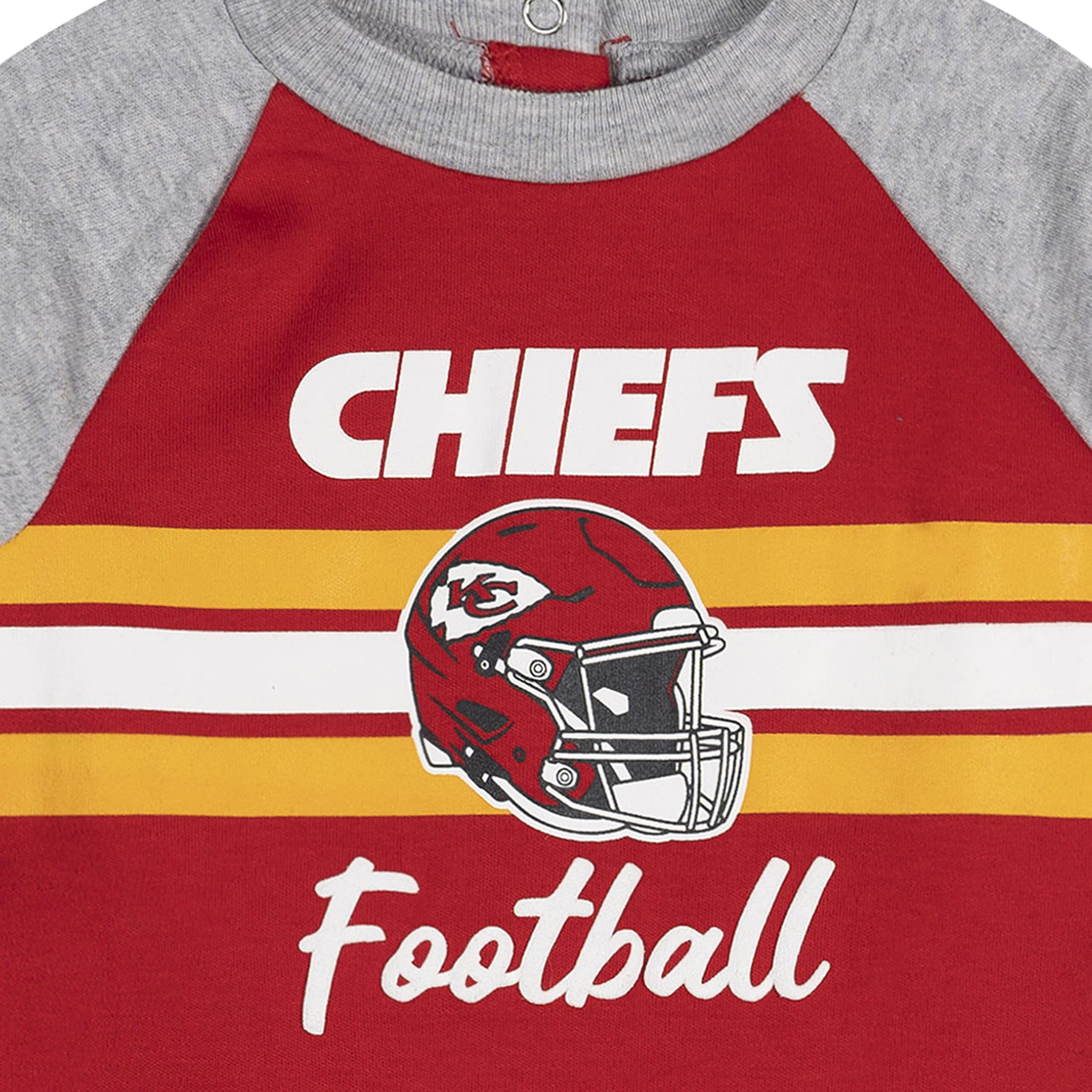Description Keep your baby boy warm and game-day ready with this NFL footed coverall pajama. Crafted from soft, durable interlock cotton, this one-piece offers a thick, premium feel designed for cozy comfort from kickoff to naptime. Thoughtful details like leg snaps and dual back neckline snaps make changes quick and simple, while ribbed cuffs and a snug neckline ensure a secure, flexible fit as baby moves and sleeps. A bold team logo and helmet graphic, complete with eye-catching gold accents, brings standout team spirit to bedtime or playtime. Whether worn for lounging, sleeping, or showing fan pride, this officially licensed NFL baby coverall is a win for baby and parents alike.