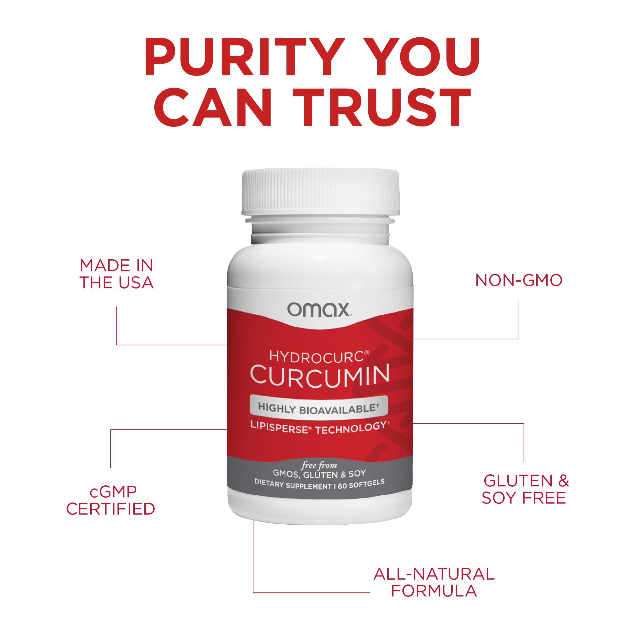 Our potent, all-natural Tumeric extract (HydroCurc), was tested to be active and absorbable in one hour, much faster than 95% curcuminoid formulas. Curcumin is the therapeutic part of Tumeric, which is a natural root. Omax uses exclusive emulsification technology, in which HydroCurc may assist in delivering a surge of Tumeric (curcumin), that may allow your body absorb this powerful herbal remedy. Every batch is tested by independent laboratories for purity and concentration. Omax Health adheres to Current Good Manufacturing Practice (cGMP).