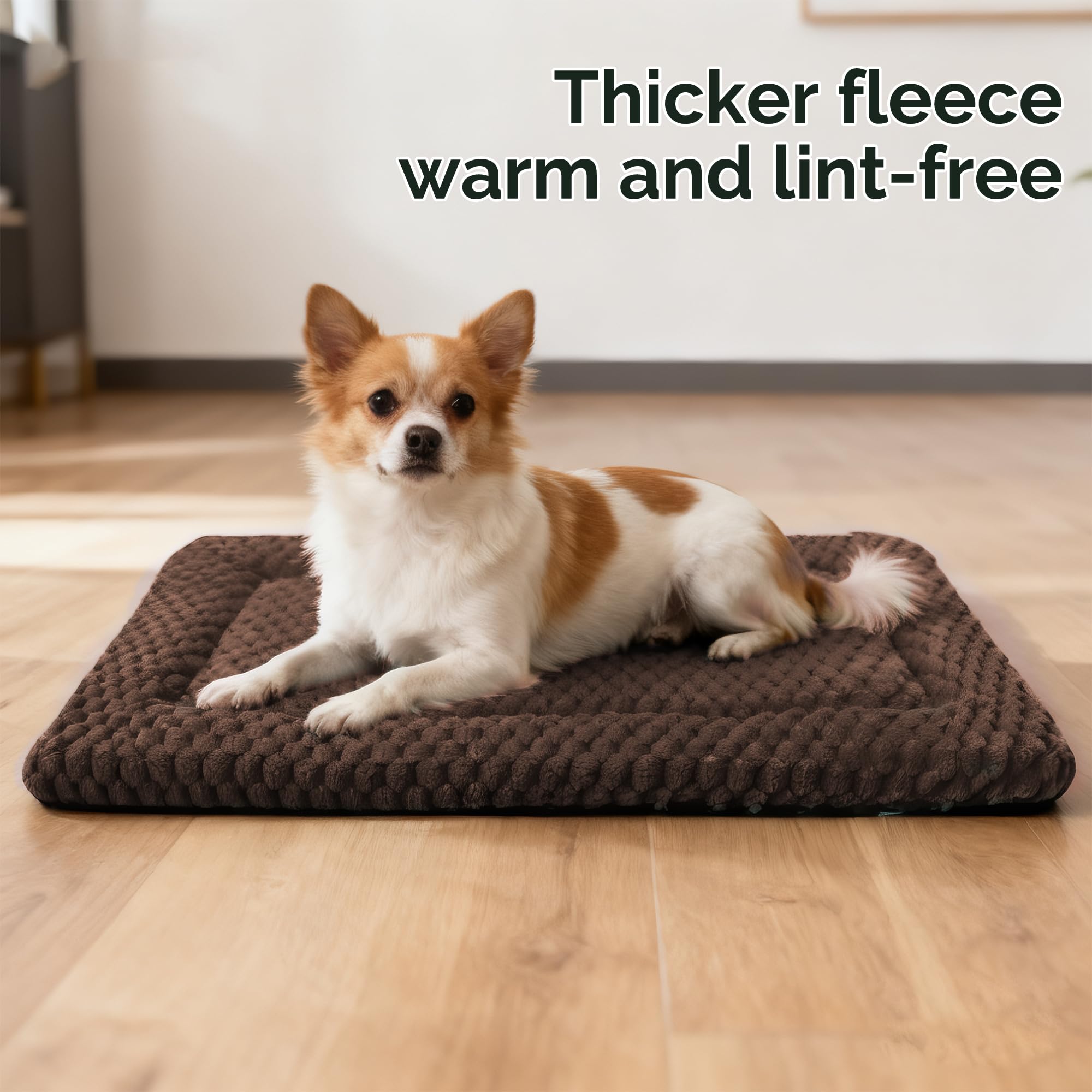 Dual-Sided for All-Season Comfort: This dog crate mat features a reversible design tailored for year-round use. One side is crafted with soft, warming plush—ideal for keeping pets cozy in colder months (perfect as a dog bed for crate). The flip side offers breathable canvas for a cool surface in warmer weather, doubling as a cat bed or kennel pad.