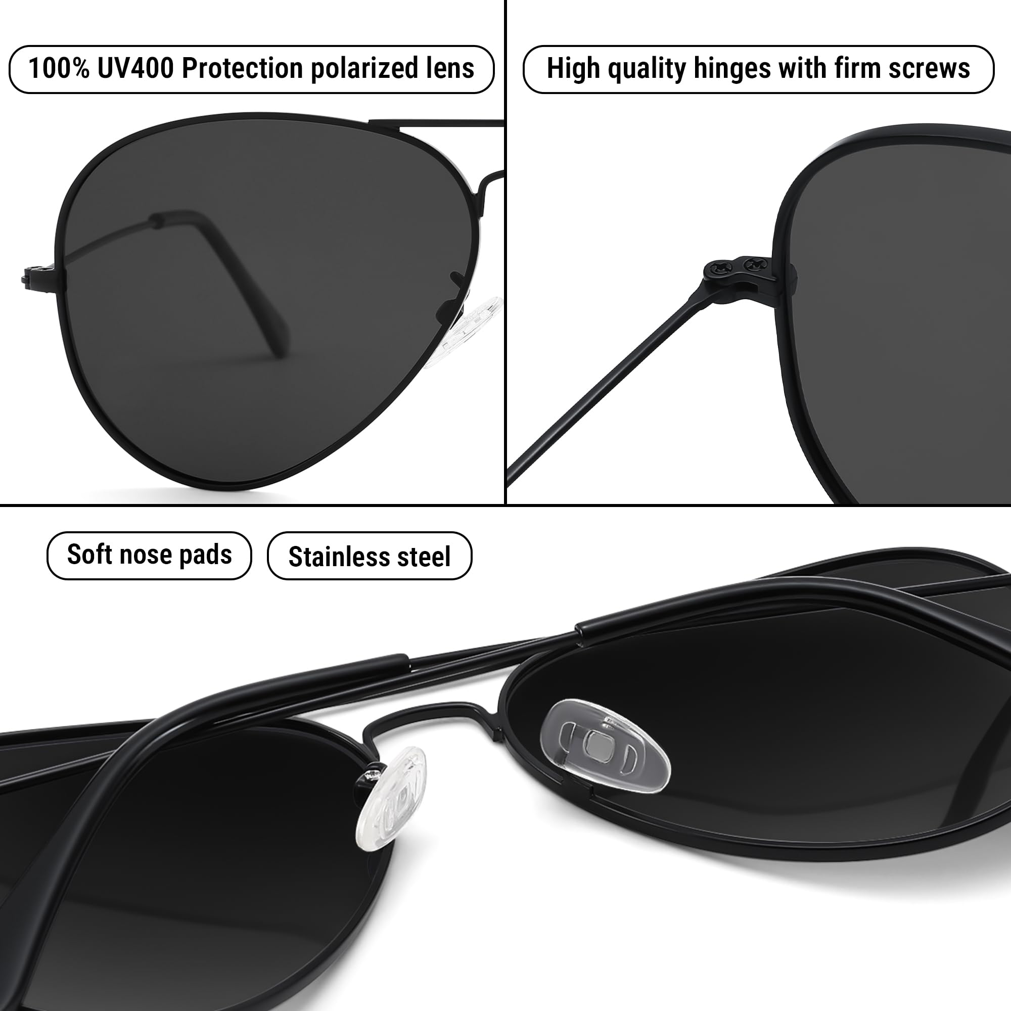 Polarized Protection: During outdoor activities, high-quality polarized glasses provide 99.9% UV400 protection and efficiently decrease glare. The classic aviator sunglasses are suitable for driving, cycling, fishing, and outdoor activities