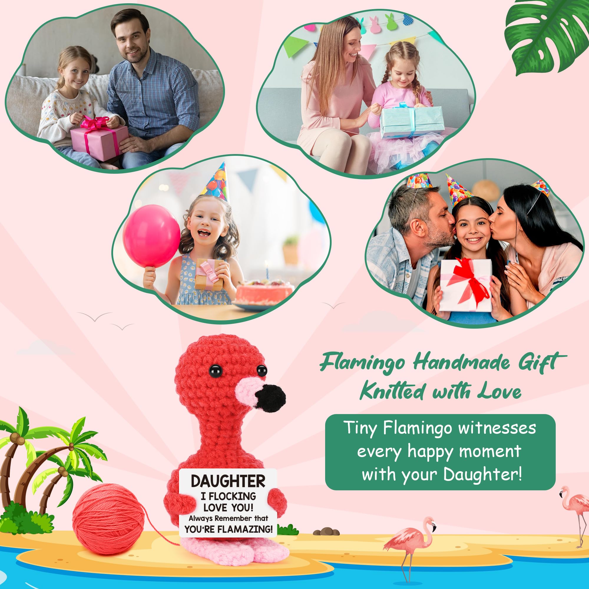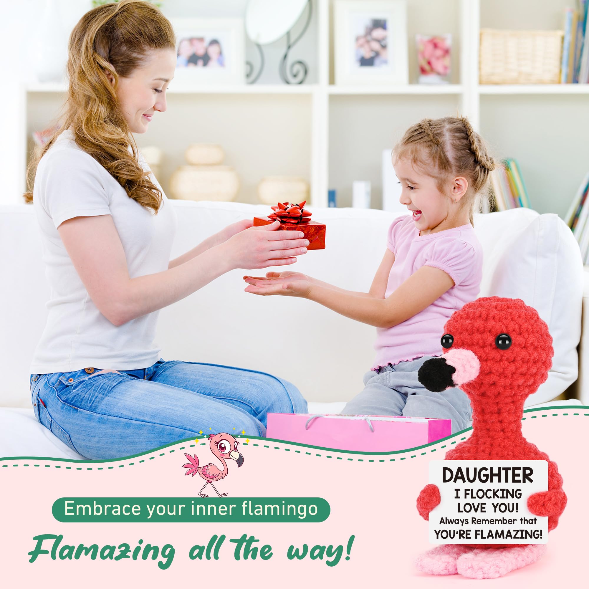 Unique Gifts for Daughter from Mom or Dad-Surprise your daughter with this adorable crochet flamingo decor featuring a heartfelt and humorous card. It’s a wonderful way to show your love and appreciation as a gift for daughter on mothers day or a first mothers day gift for daughter. This flamingo will be cherished for years as a special keepsake, perfect for mother daughter gifts and gifts for daughter from mom
