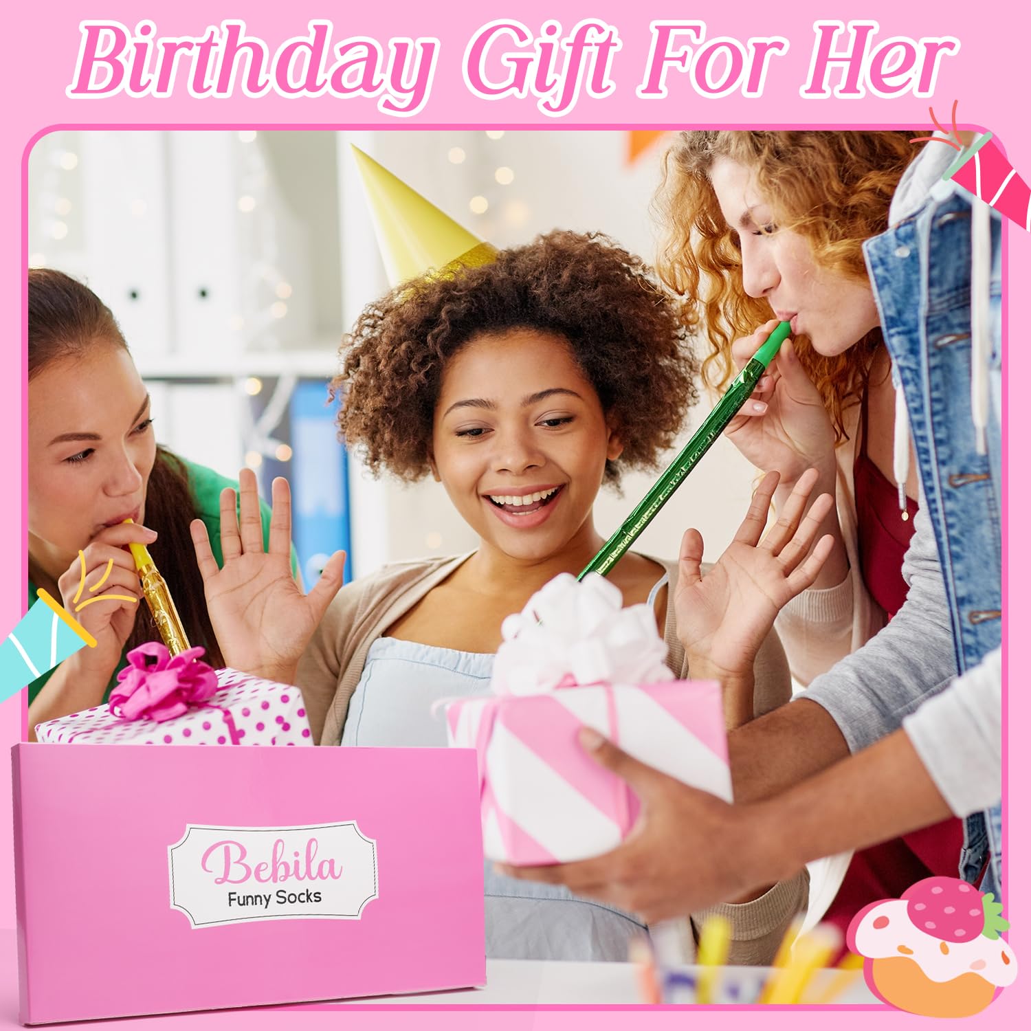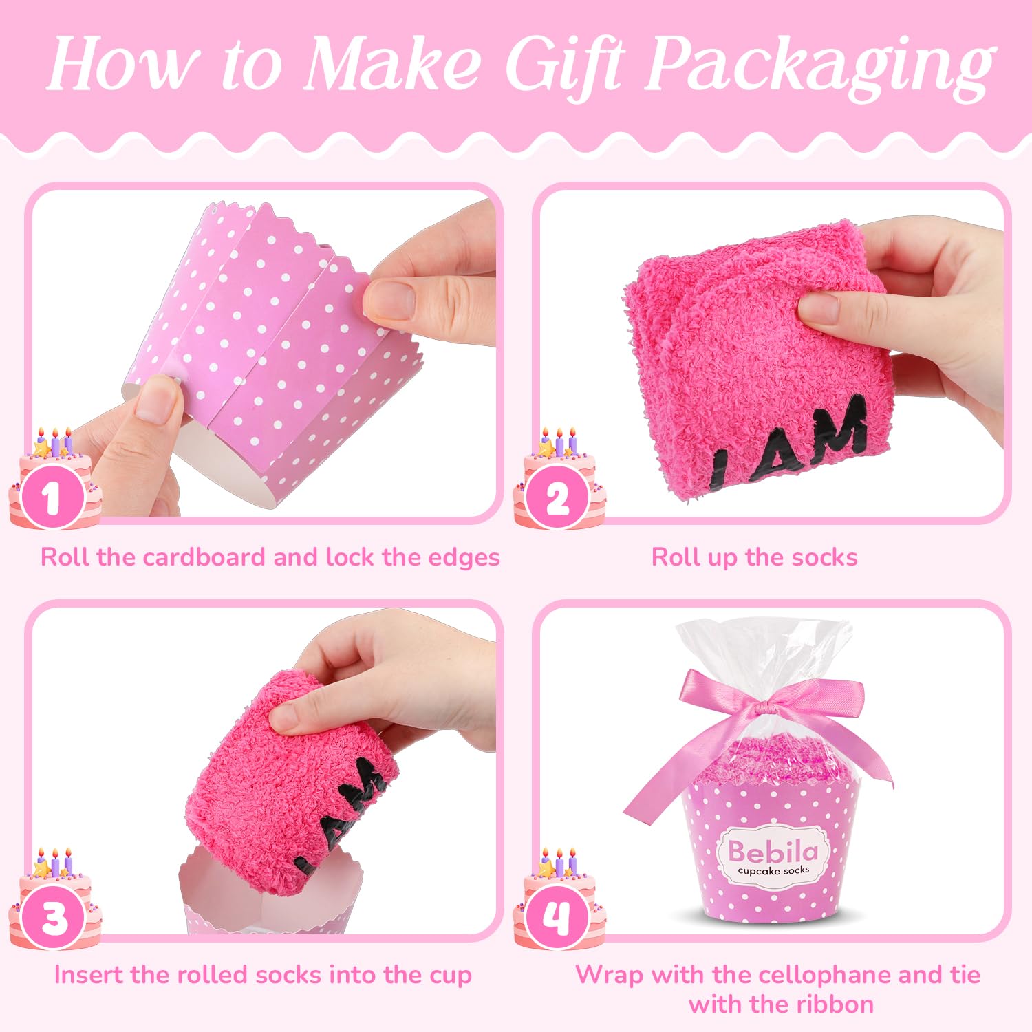 LOVELY CUPCAKE PACKAGING: We provide a birthday gifts box and paper belt with each pair of funny socks. Elevate your gifting experience with our charming cupcake-themed packaging! Just only need follow the easy steps to assemble the cupcake-shaped box, and you'll prepare a nice gift ideas for women 50s
