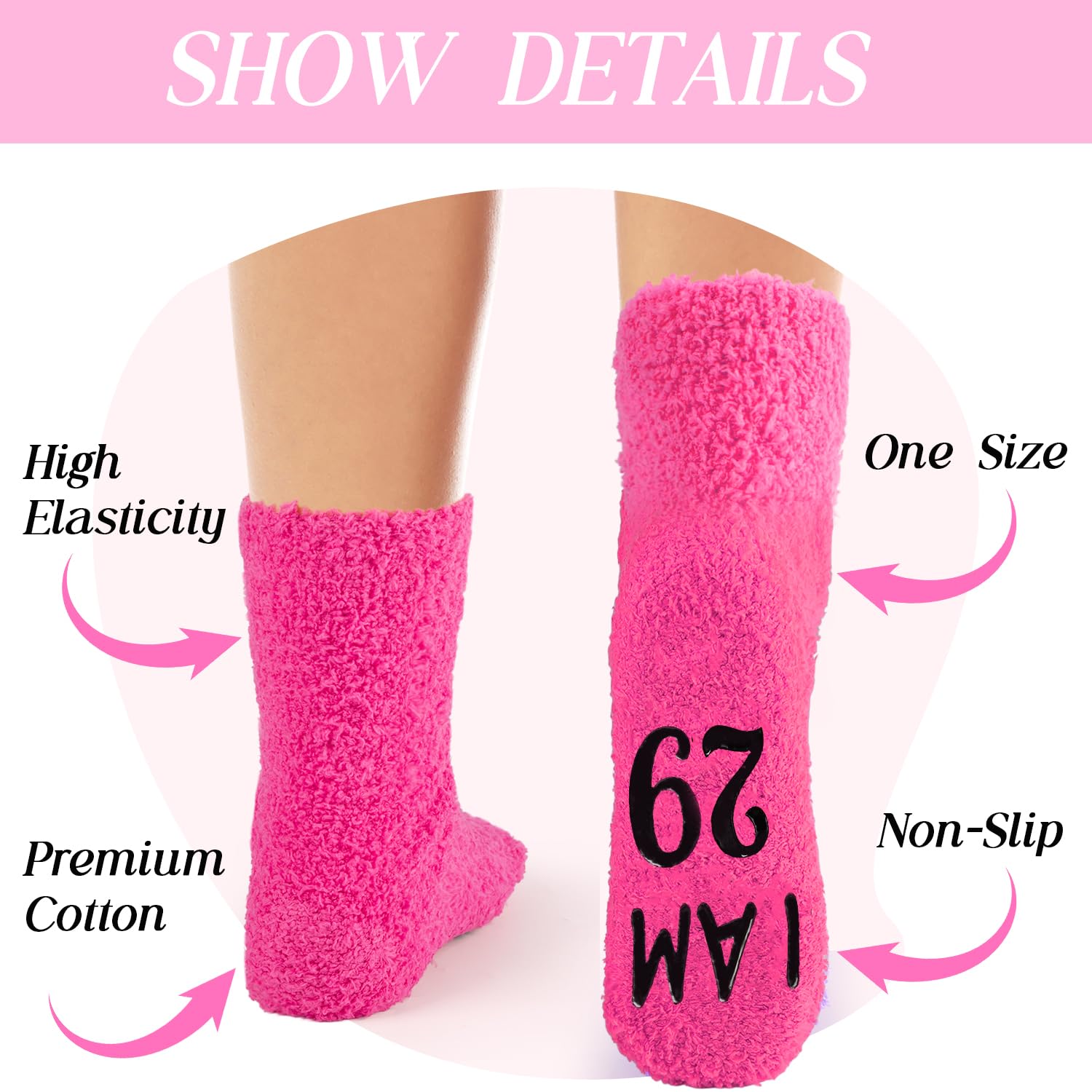 COMFORT MATERIAL: Our funny birthday socks are made of coral velvet. The soft, plush fabric feels gentle against your skin, making these socks a delight to wear, and the non-slip black soles provide excellent traction, ensuring your safety on any surface, whether you're walking on hardwood floors, tiles, or carpets