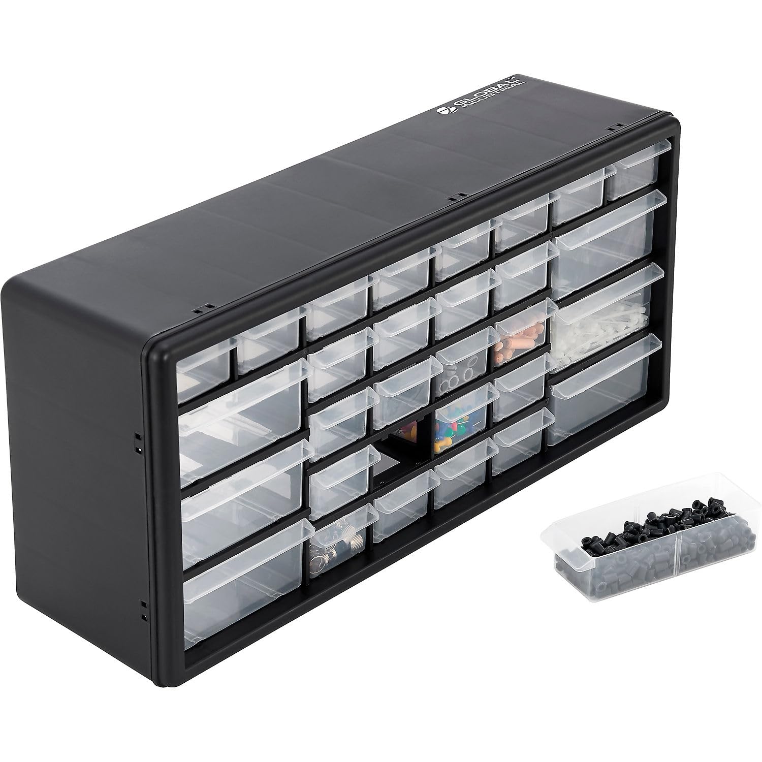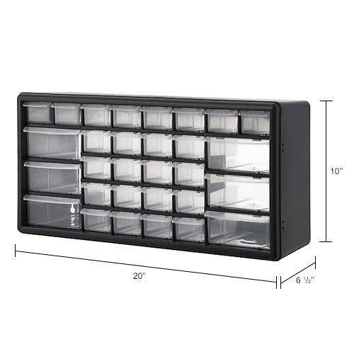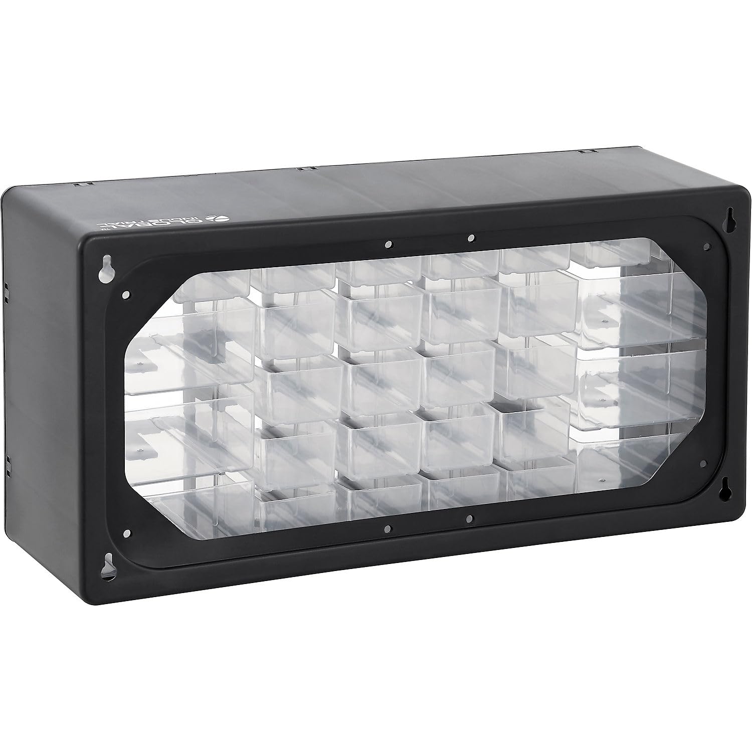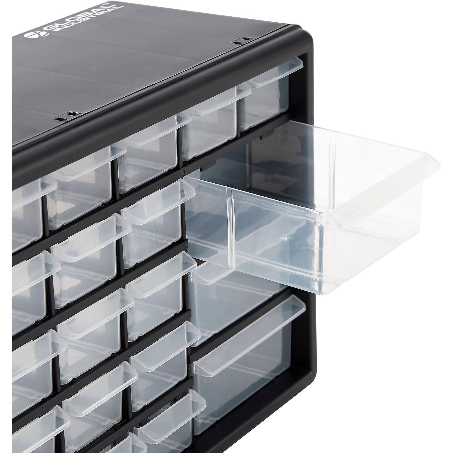 An ideal solution for warehouse spaces, garages, and classrooms, this cabinet can be wall-mounted with included keyhole slots. Constructed from durable plastic, this storage cabinet is designed to organize and protect small parts and components. It features thirty transparent polypropylene drawers for content identification, finger-grip pulls for easy access, and rear stop tabs to prevent contents from spilling. , Lot of 1