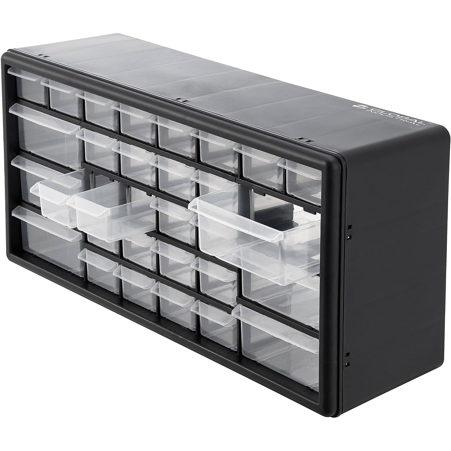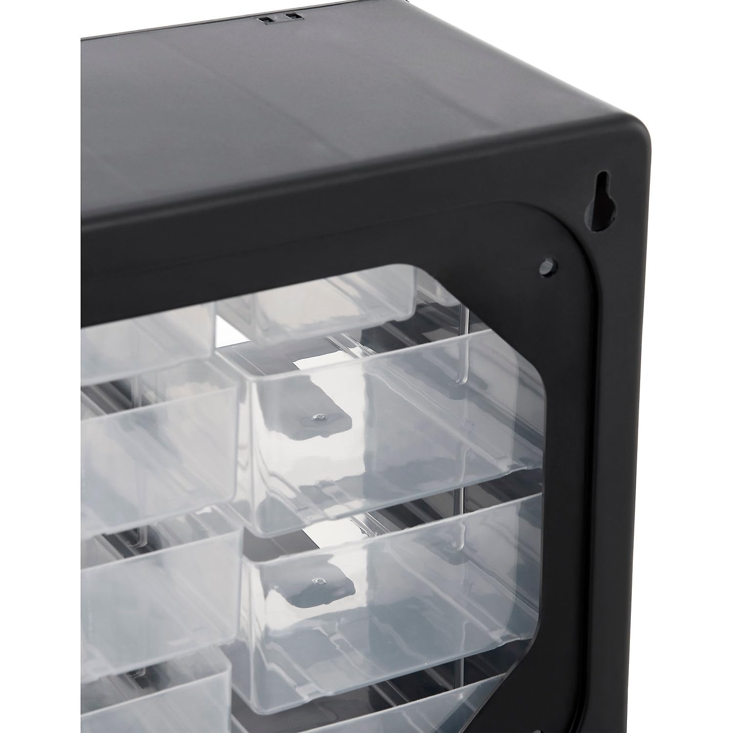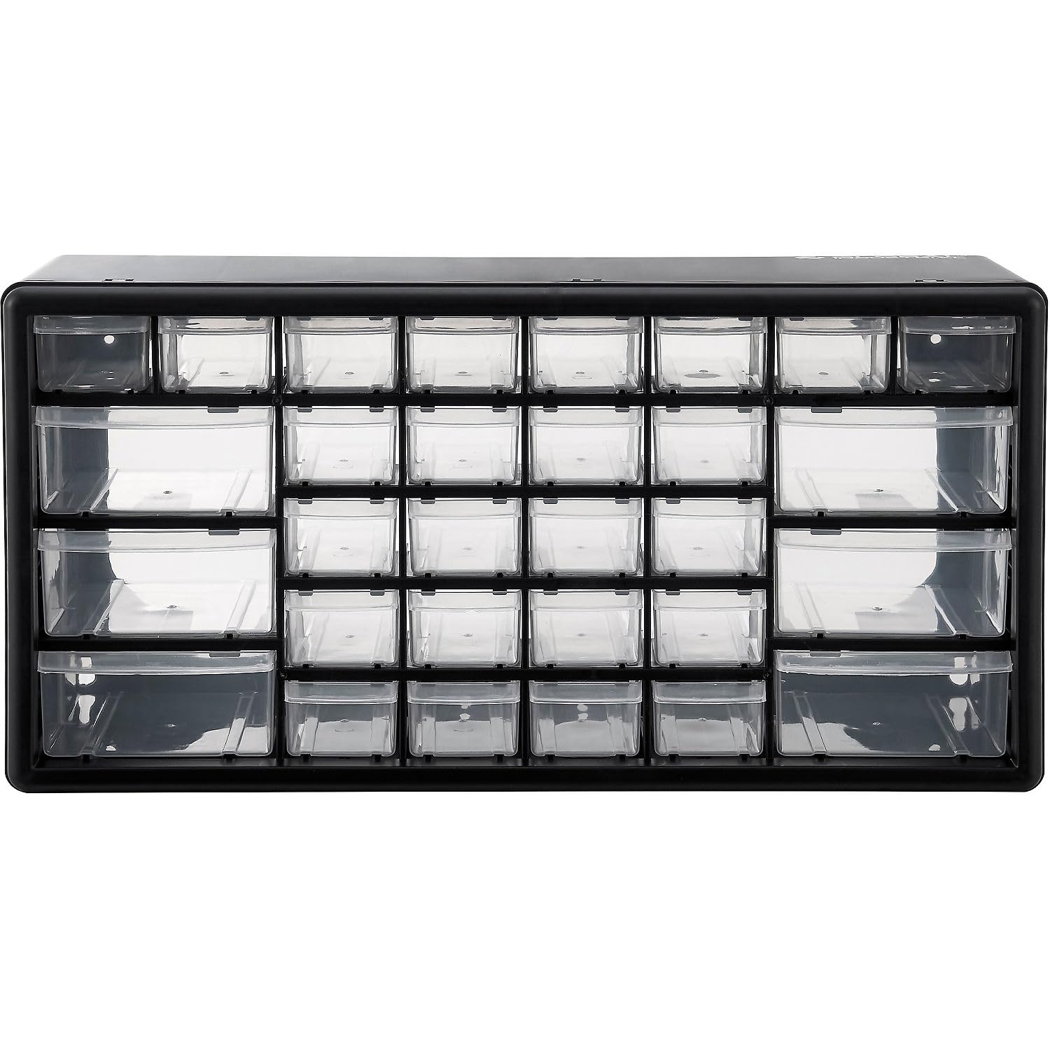 An ideal solution for warehouse spaces, garages, and classrooms, this cabinet can be wall-mounted with included keyhole slots. Constructed from durable plastic, this storage cabinet is designed to organize and protect small parts and components. It features thirty transparent polypropylene drawers for content identification, finger-grip pulls for easy access, and rear stop tabs to prevent contents from spilling. , Lot of 1