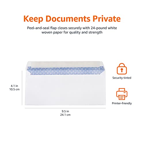 Product Description Amazon Basics #10 Envelopes, Security Tinted, Peel & Seal, White - 500-Pack. From the Manufacturer Amazon Basics